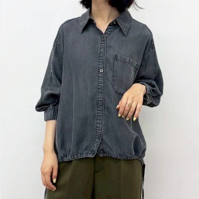 【CYNICAL(シニカル)】 デニムのようなカジュアルさと、 落ち感のある素材で 大人カジュアルスタイルが完成! 七分袖シャツ。 セルロース素材の肌に馴染む 柔らかい着心地はクセになる一枚! 前裾のドローコードを絞れば シルエットを変えて、 着こなしが楽しめます♡ 七分ほどの袖丈は、 ロングシーズン着用いただける 嬉しいポイントです♪ 袖口はゴム仕様でメリハリのある 仕上がりに。 Tシャツの上からもさらっと羽織れて、 季節の変わり目から大活躍の予感です♡ インスタグラムURL http://instagram.com/generalekuzuha ※サイズ フリー02 ※カラー ホワイト/ライトブルー/ブルー/ブラック ☆モデル着用カラー ブラック ☆モデル身長 160㎝ 【素材】 再生繊維(セルロース)100% 【サイズ】 身幅 65㎝ 身丈 57〜70㎝ 裄丈 65㎝ ※スタッフ採寸の為、 多少の誤差がある場合がございます。 ※商品在庫、カラーによりサイズに個体差がある場合がございます。 ※実際の商品の色合いと 多少異なってみえる場合がございます。 ※当店では、実店舗と商品在庫を共有しております。 サイトに実際の在庫状況が反映されるまでに若干の時間がかかり、すでに完売となっている場合がございます。 予めご了承ください。 ☆おうちでお洗濯していただけます。