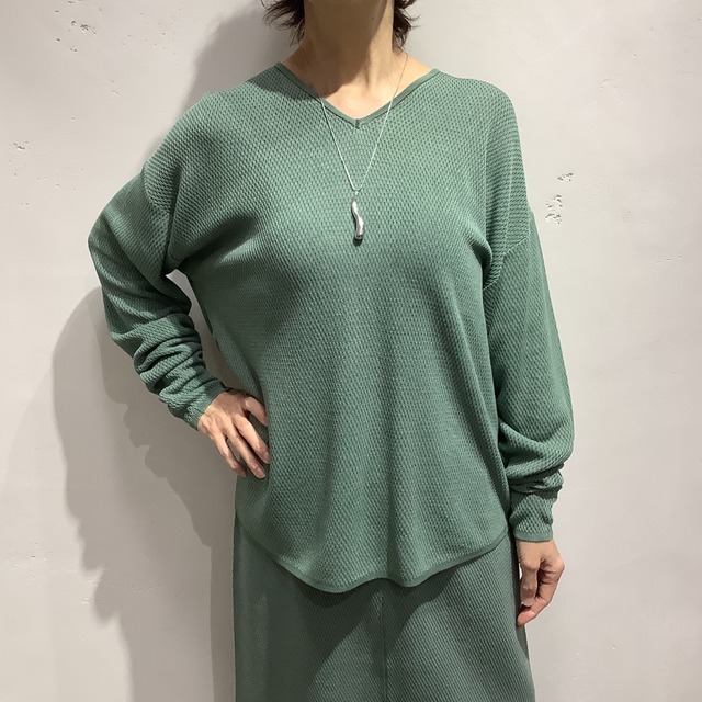 【flamingo firm (フラミンゴファーム)】ハニカムワッフルVネックニットプルオーバー[520097]