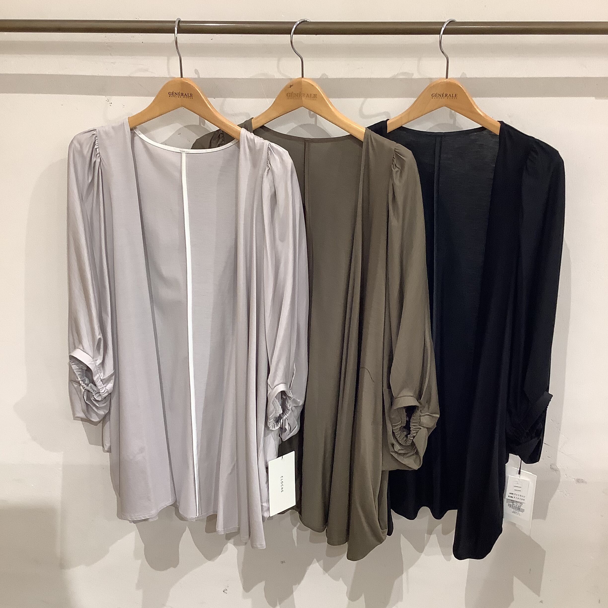 ゆったり羽織れるドルマンスリーブで、