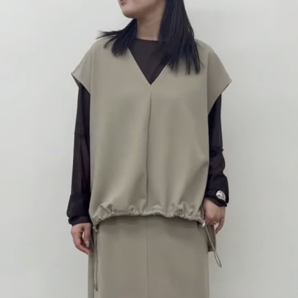 【CLOCHE(クロッシェ)】ストレッチドロストVネックベスト [552-85598]