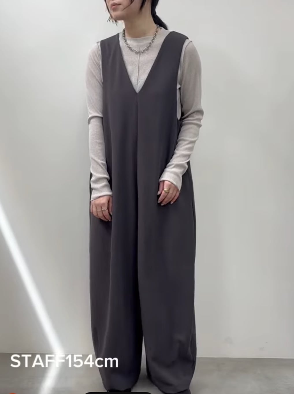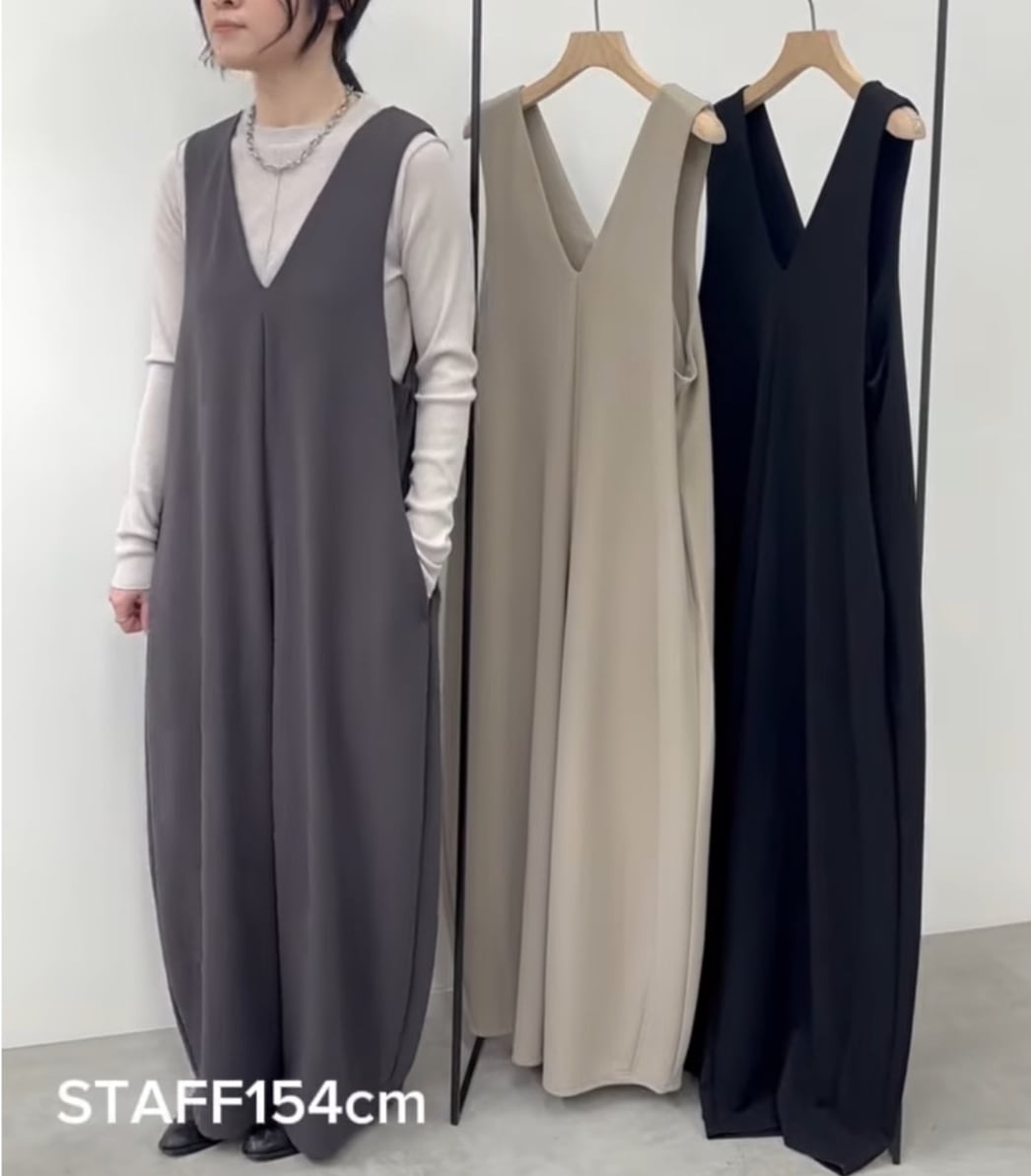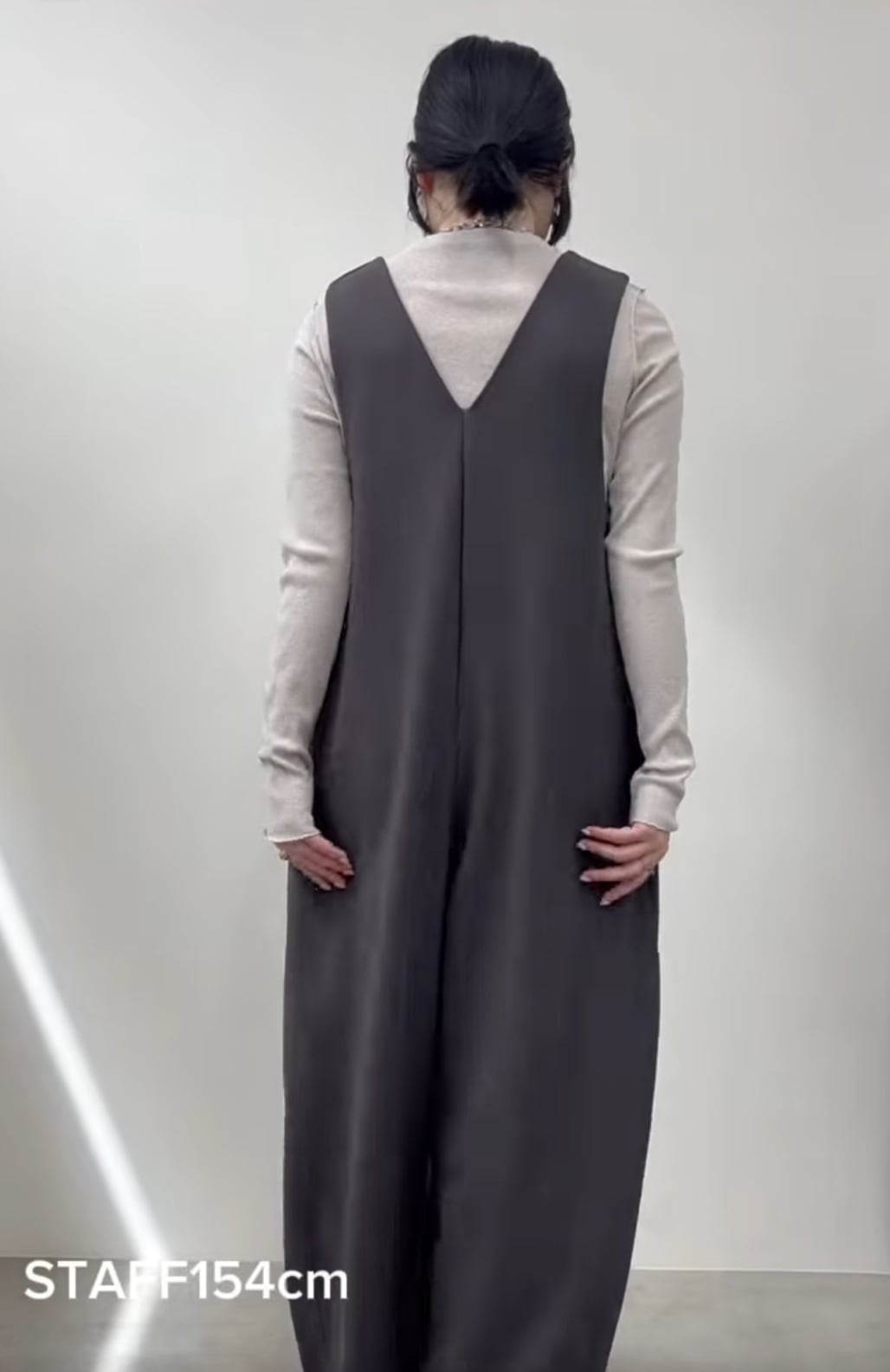 【CLOCHE(クロッシェ)】 ストレッチVネックカーブサロペット[552-86549]