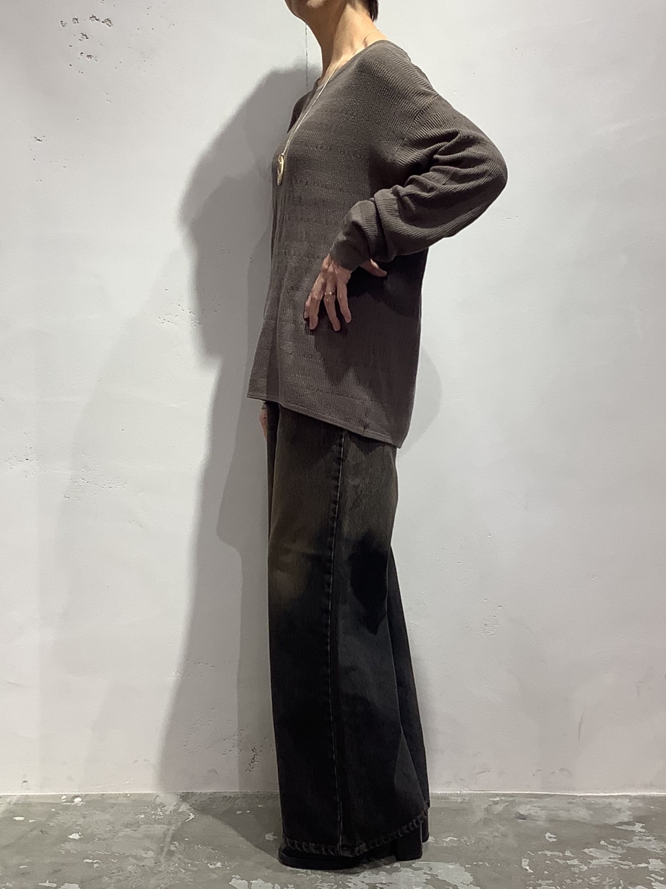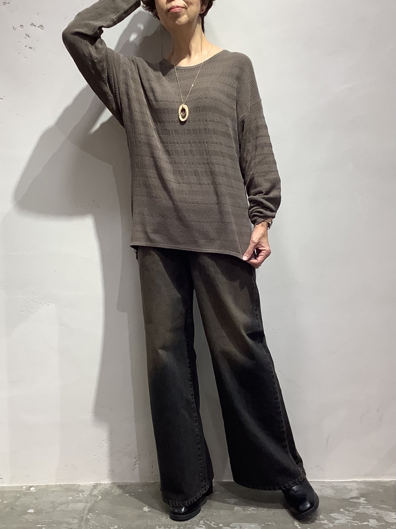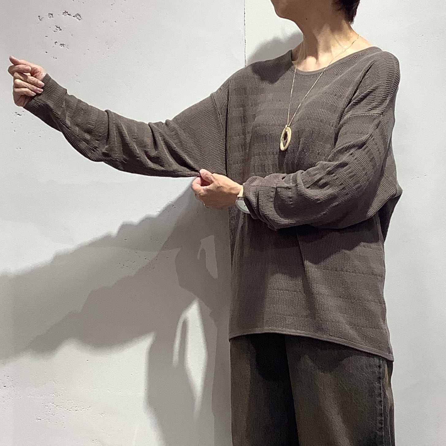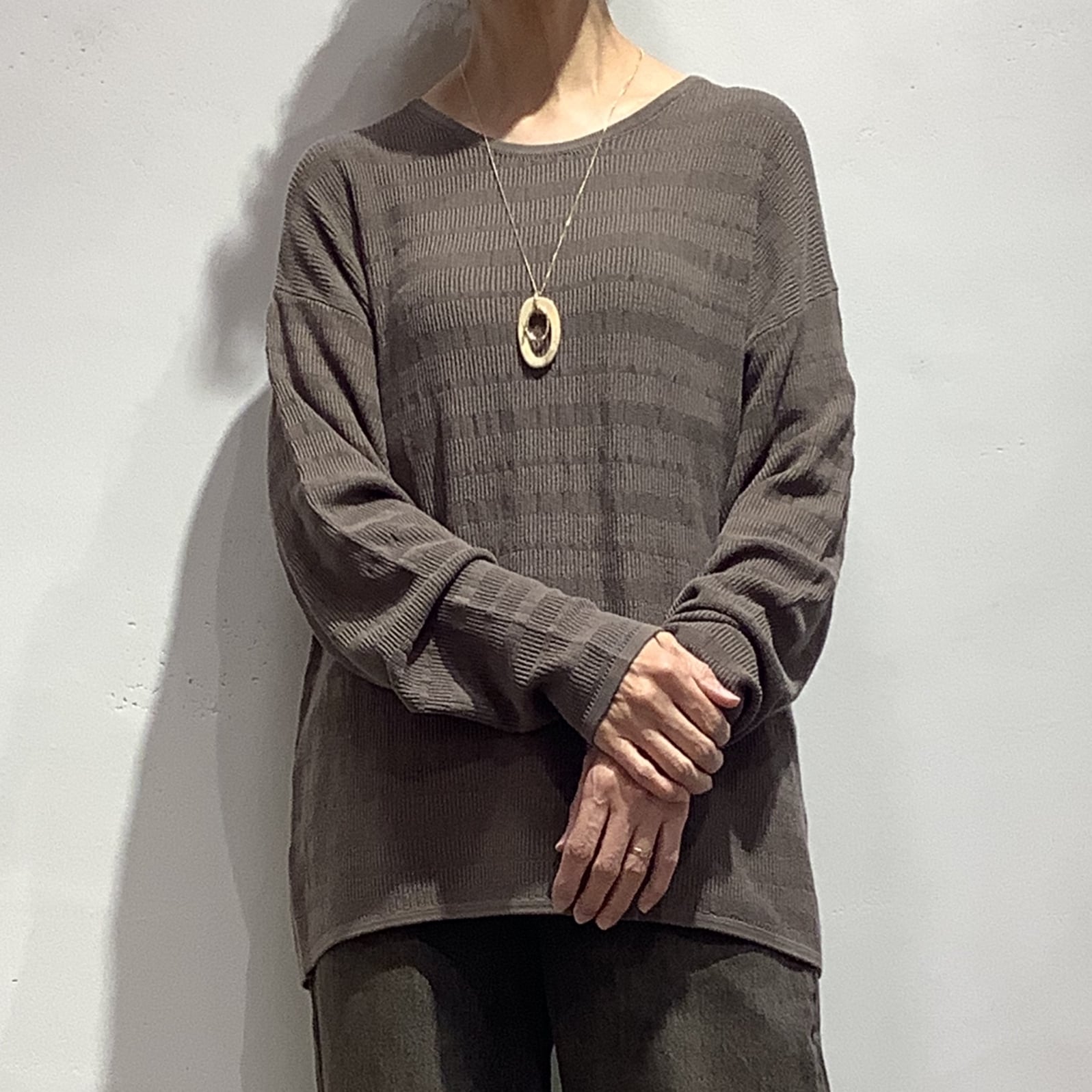 【flamingo firm (フラミンゴファーム)】テンセル透かし編みニットプルオーバー[520093]