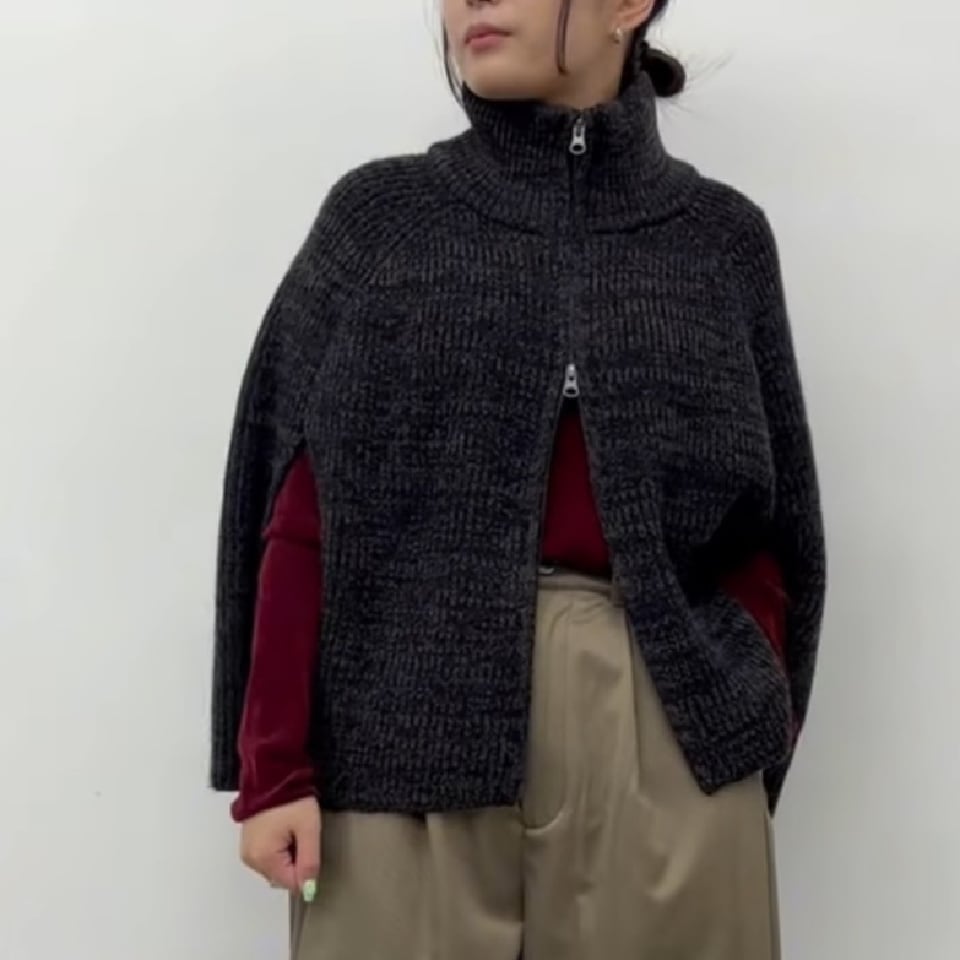 【CLOCHE(クロッシェ)】ニットジップポンチョ[552-85550]