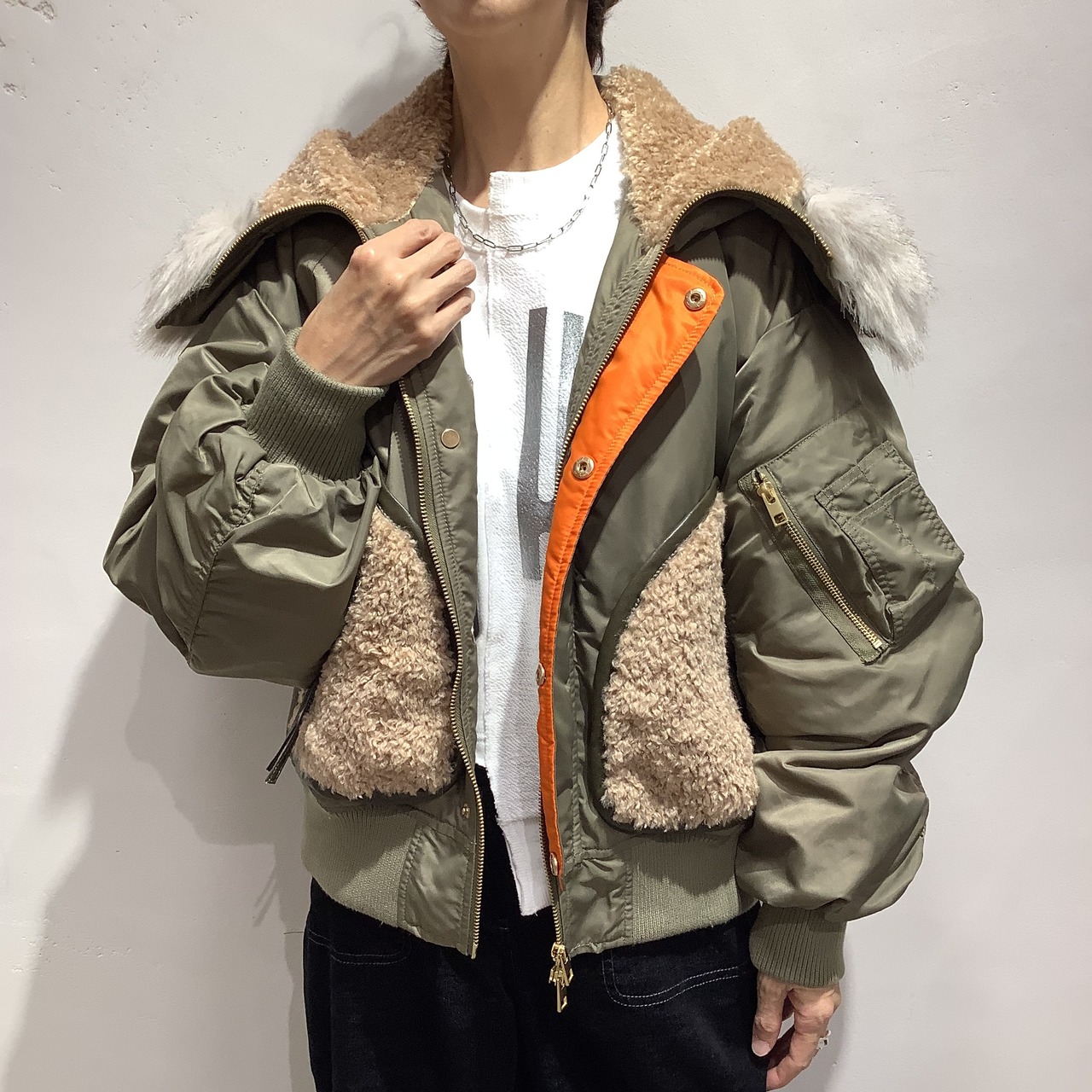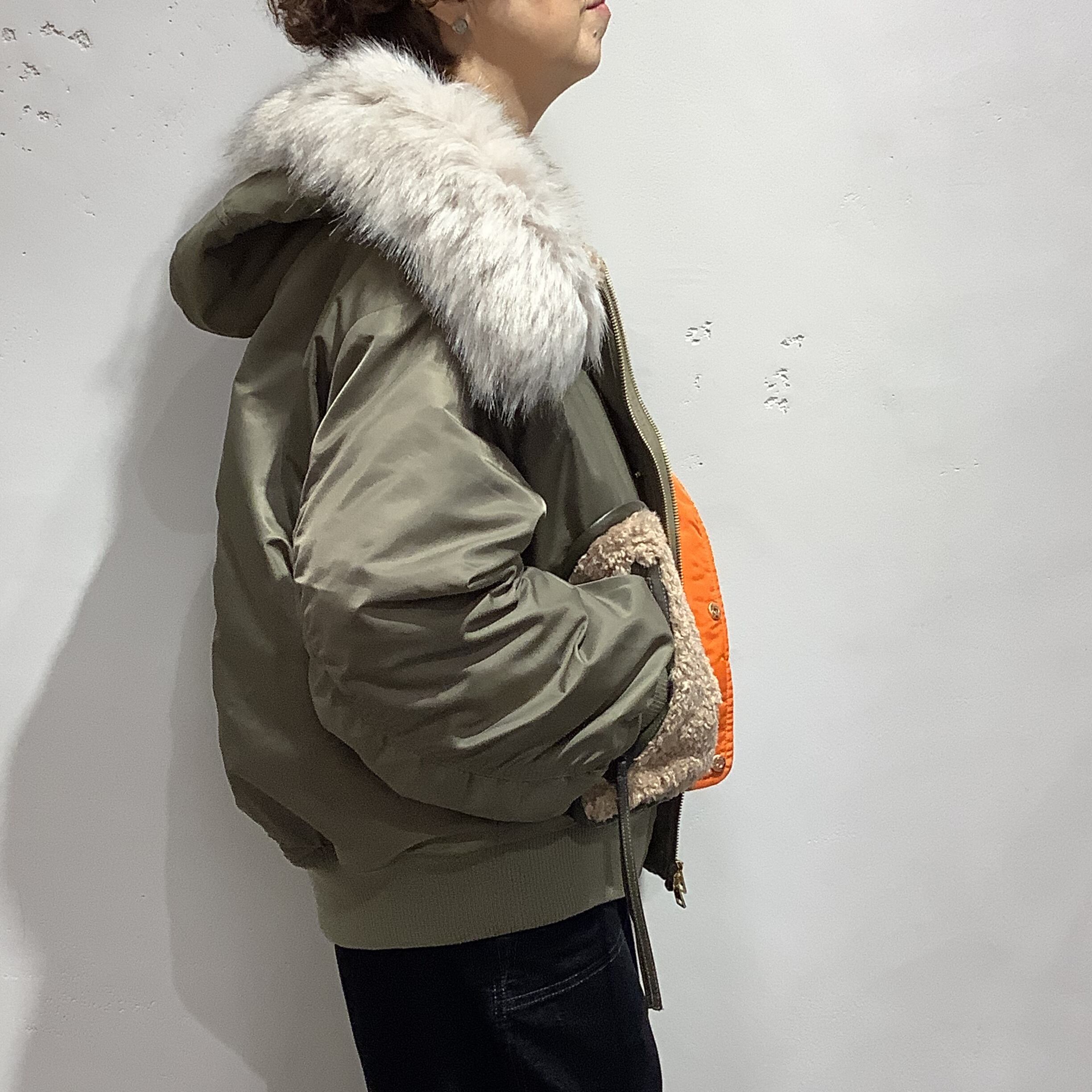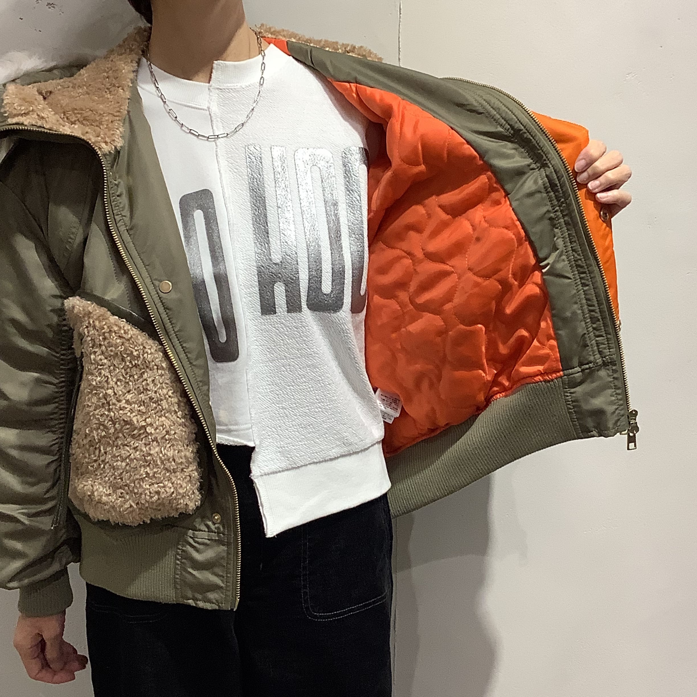 MA-1ならではのオレンジの裏地が