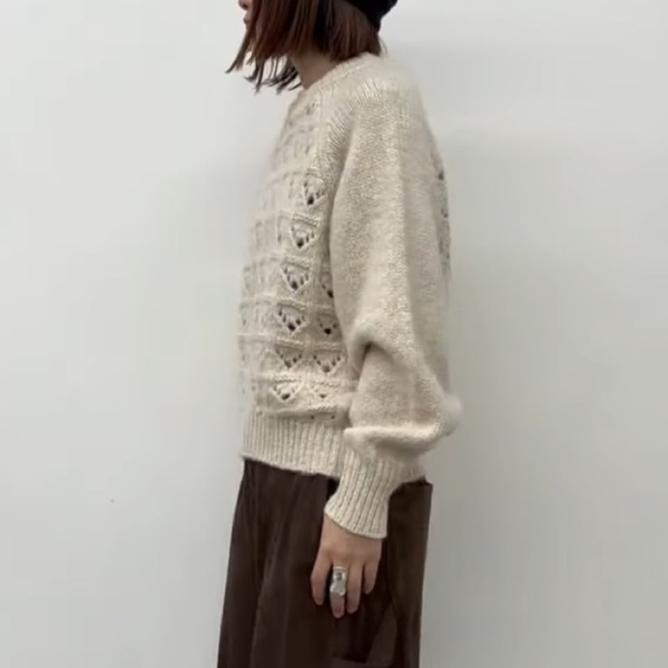 【CLOCHE(クロッシェ)】透かし編みニットプルオーバー[552-85558]