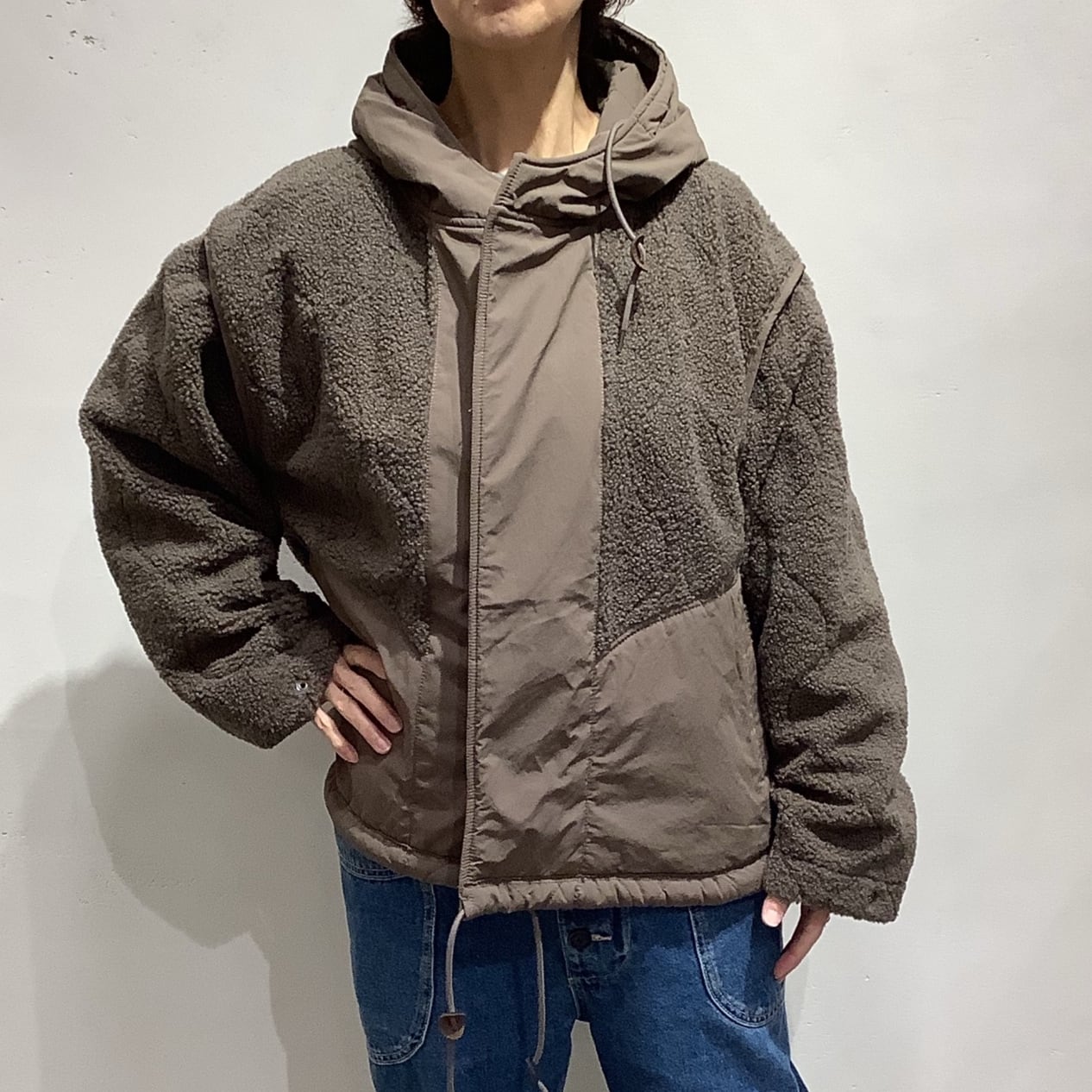 【flamingo firm (フラミンゴファーム)】リバーシブルナイロンボアフーディブルゾン[520095]