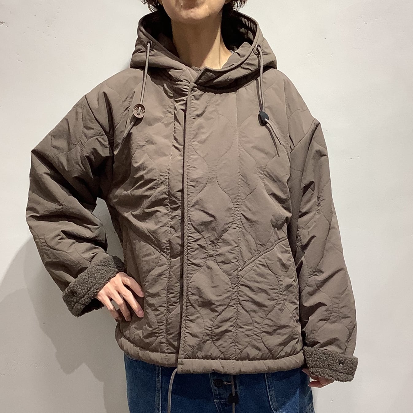 キルティングナイロン×ボアの