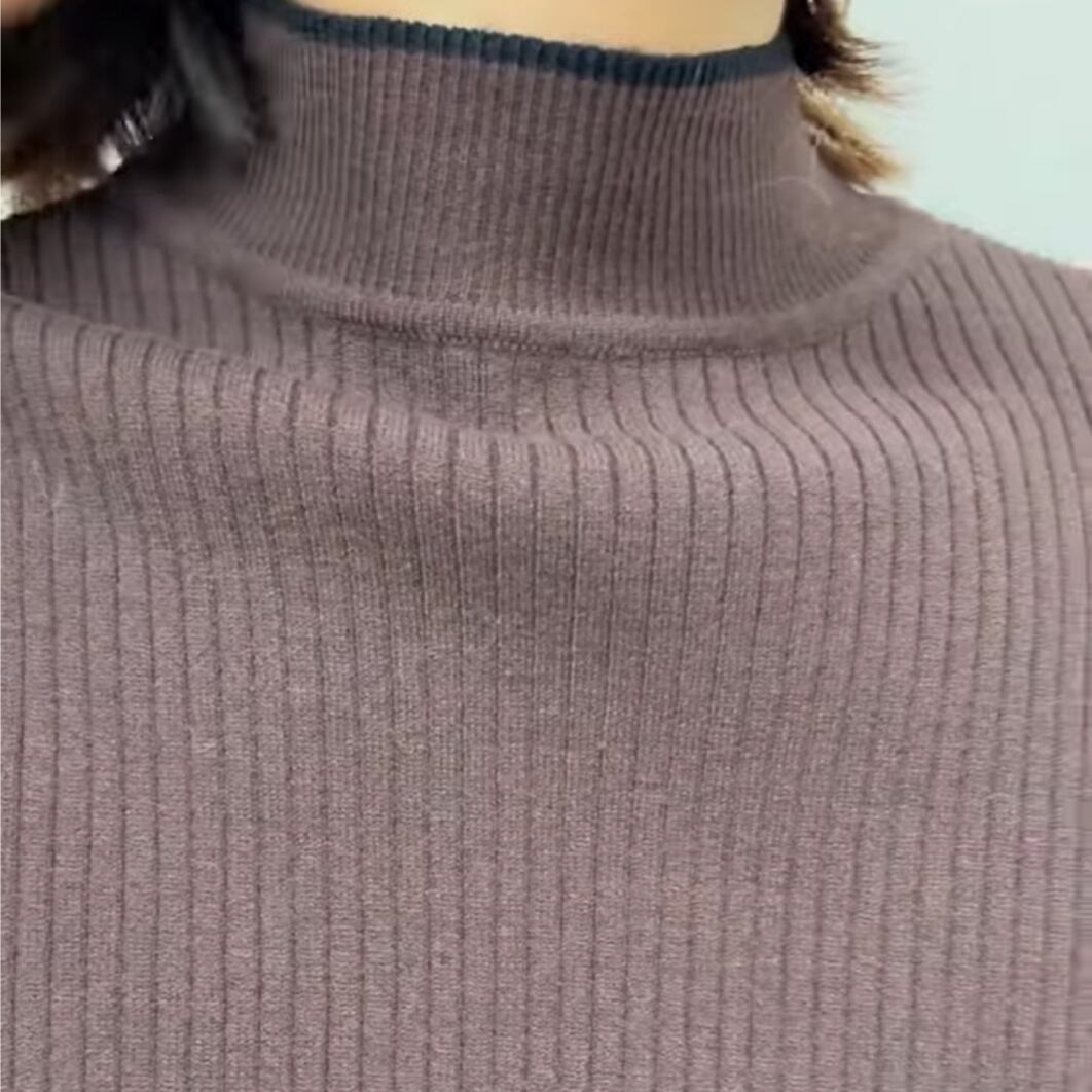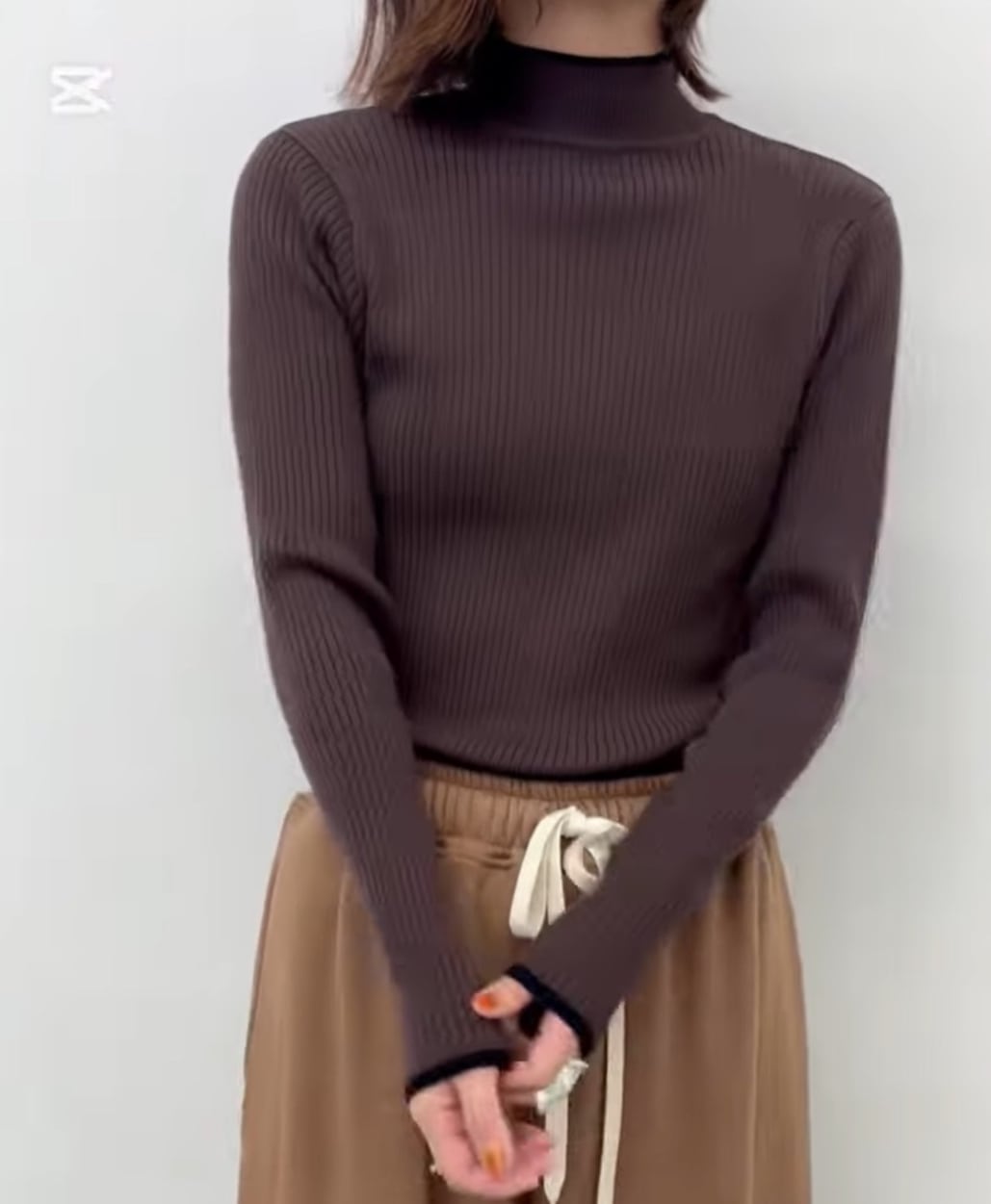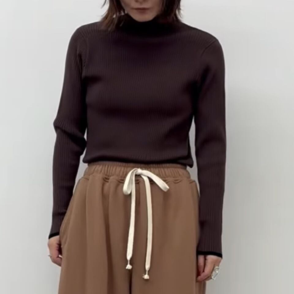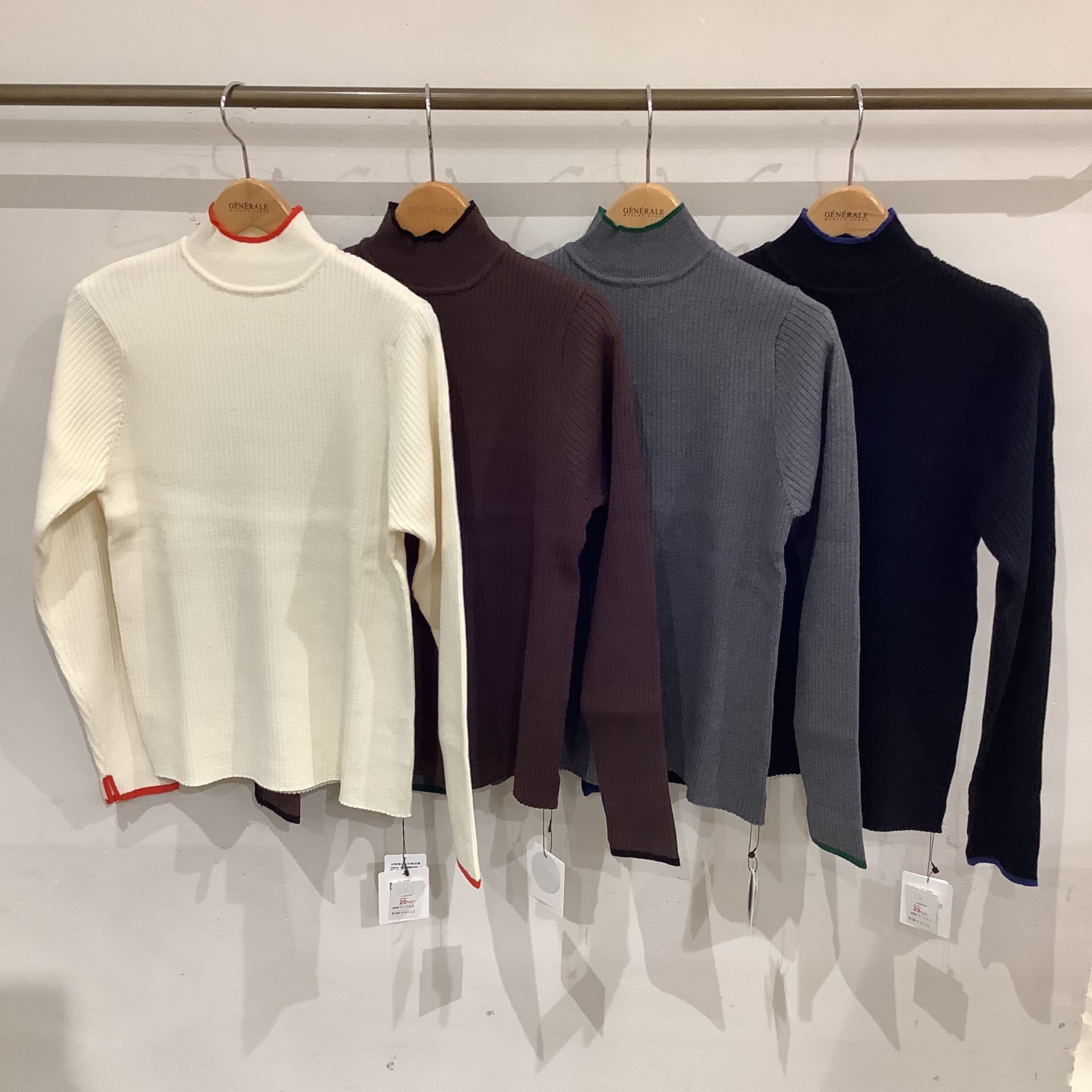 【CLOCHE(クロッシェ)】ライン配色ボトルネックリブニット[552-85580]