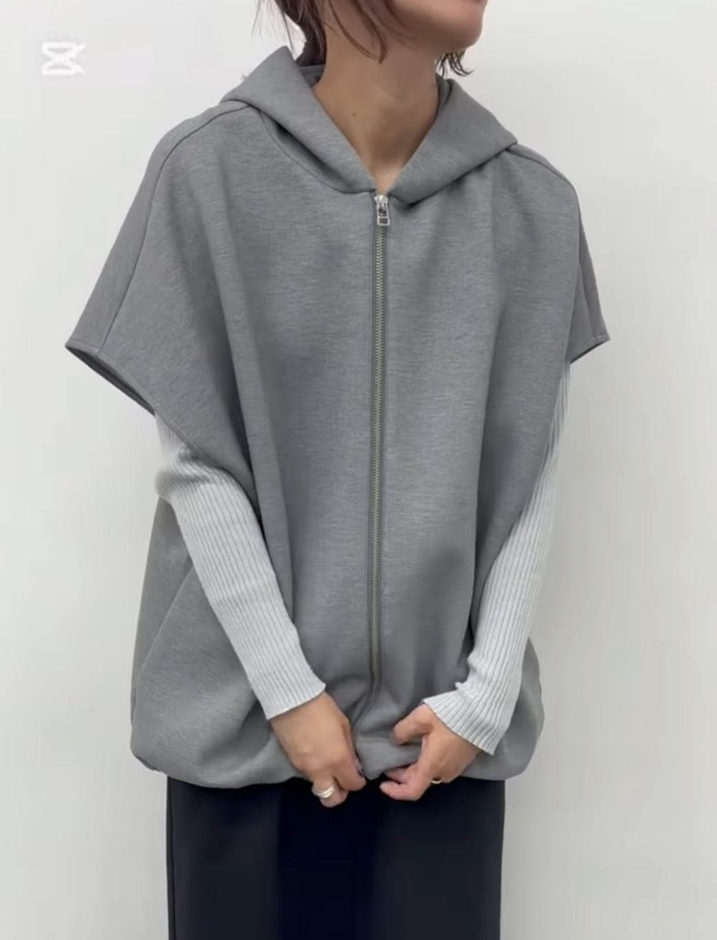 【CLOCHE(クロッシェ)】ダンボールフーディジップベスト[610-85005]