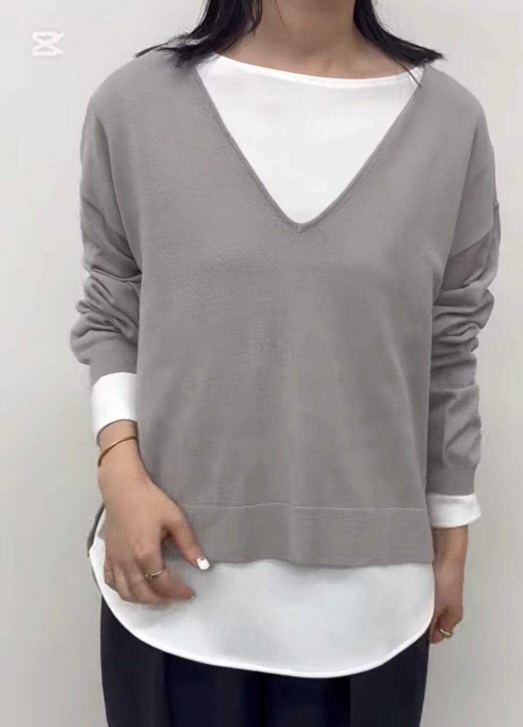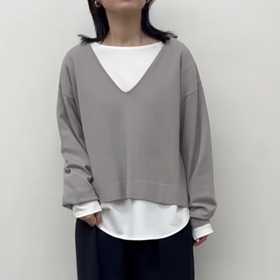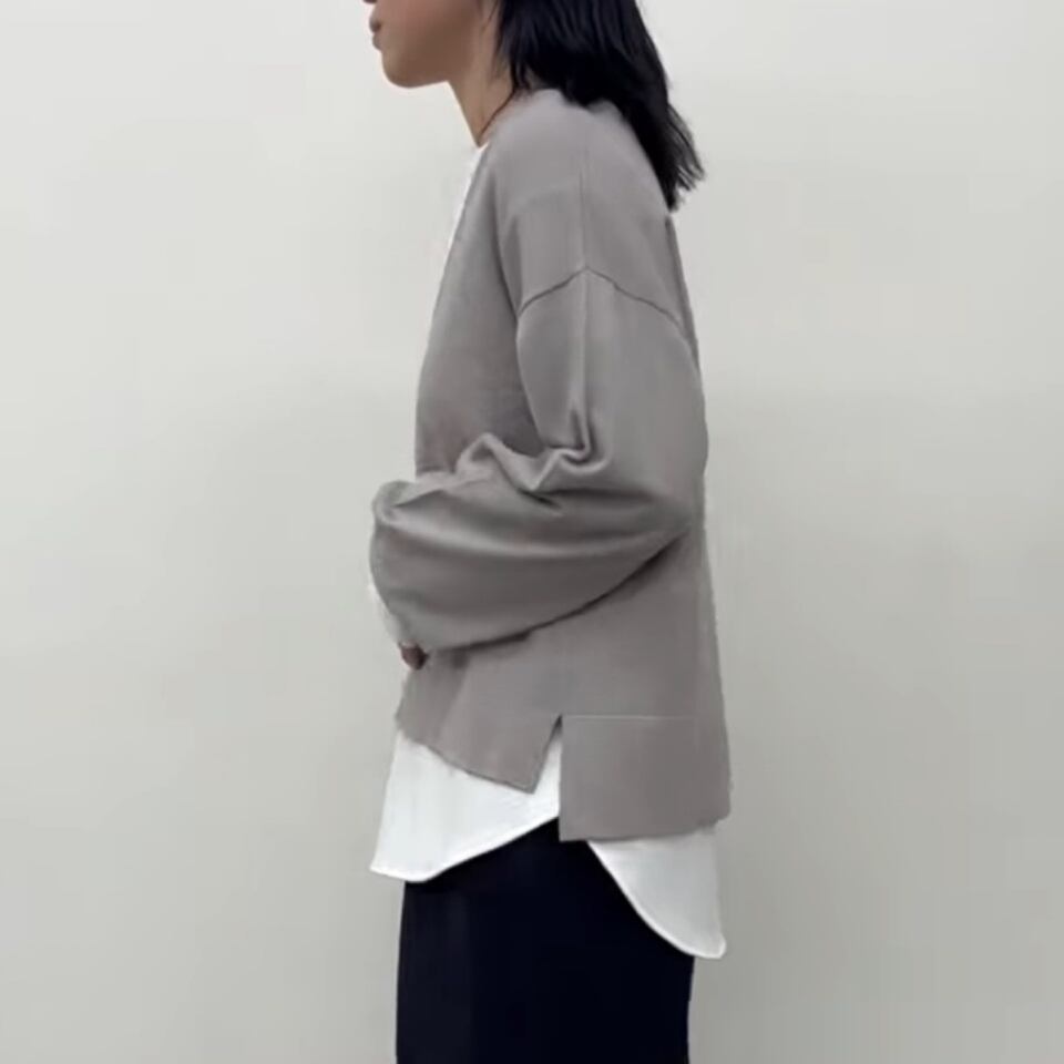V開きニットはサイドスリットで、