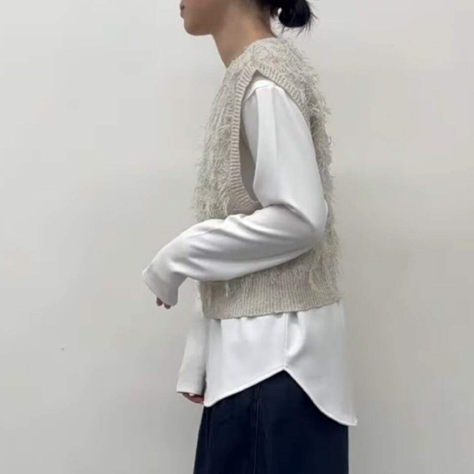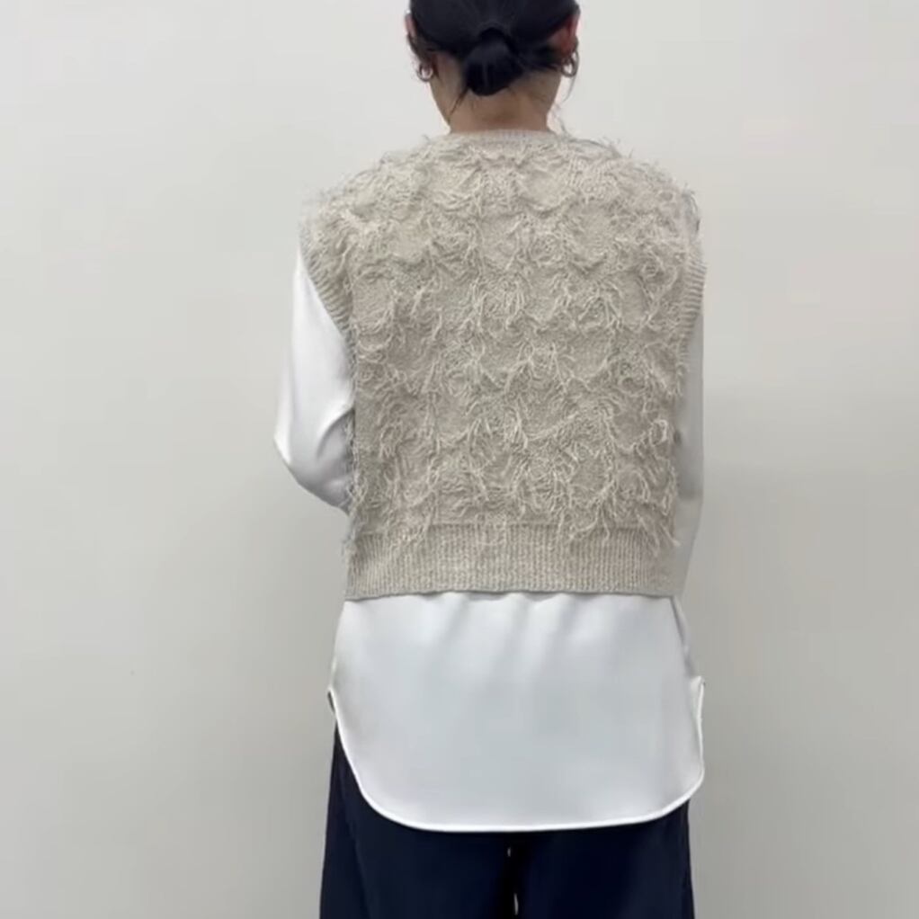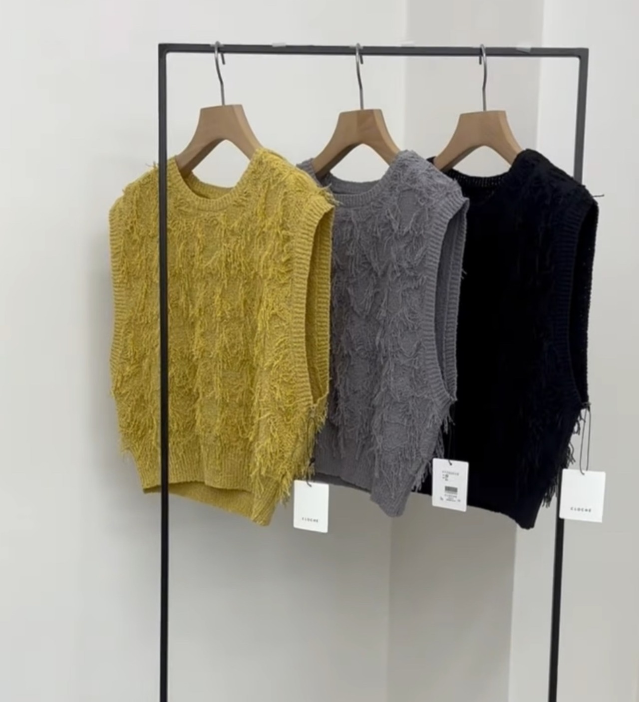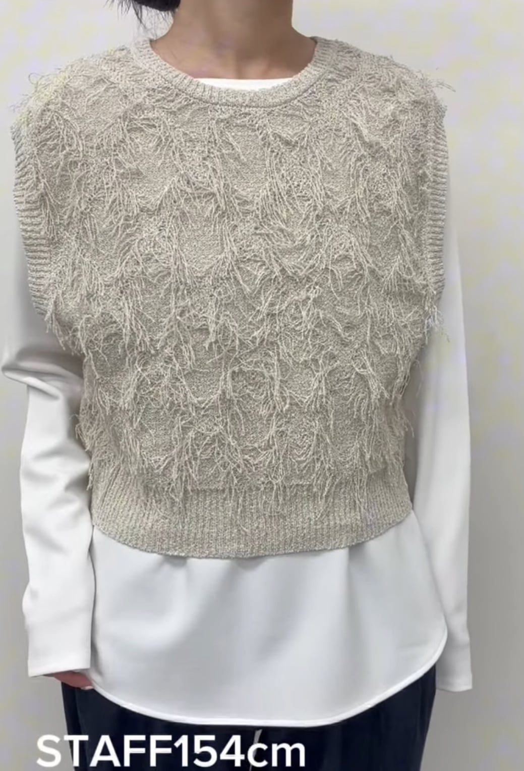 【CLOCHE(クロッシェ)】フリンジニットベスト [612-85516]