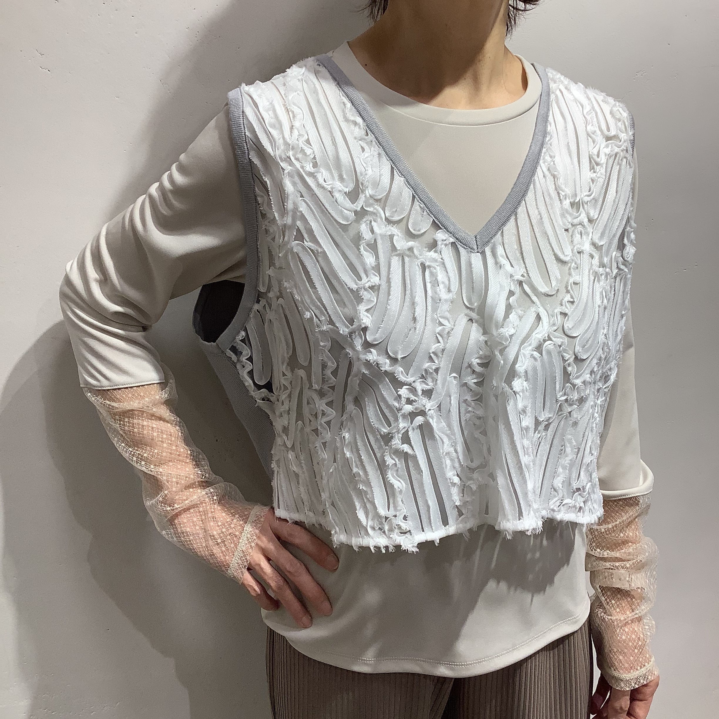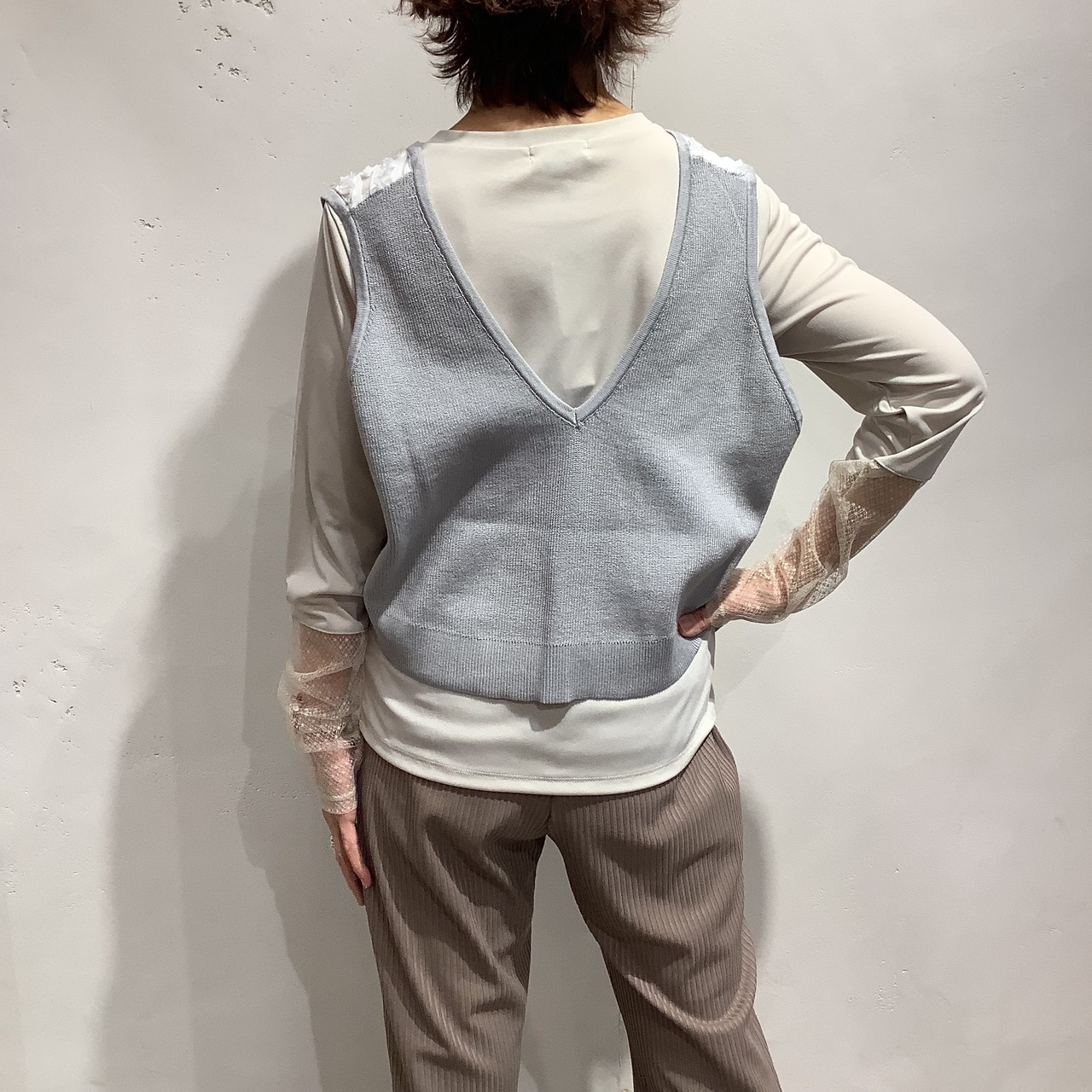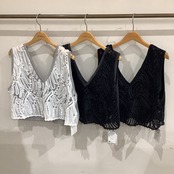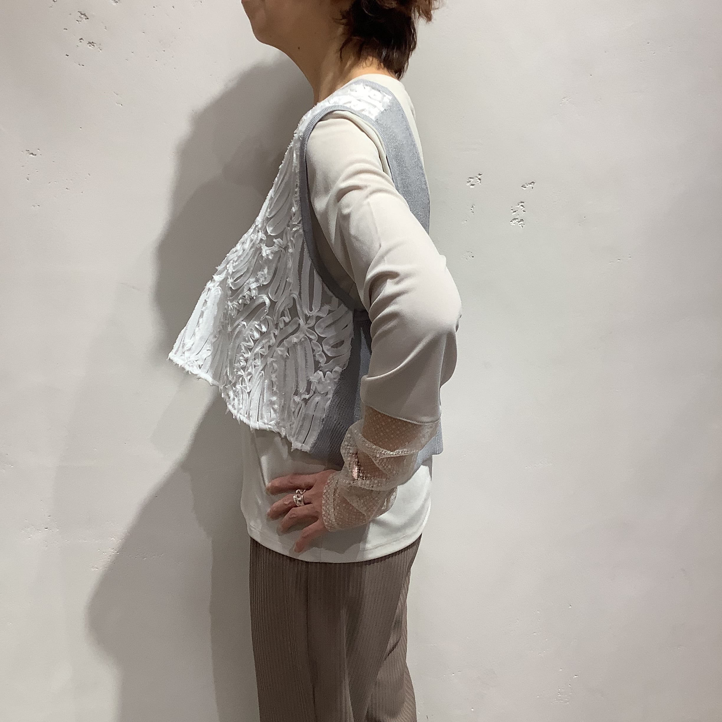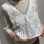 華やかなレース×ニットベスト