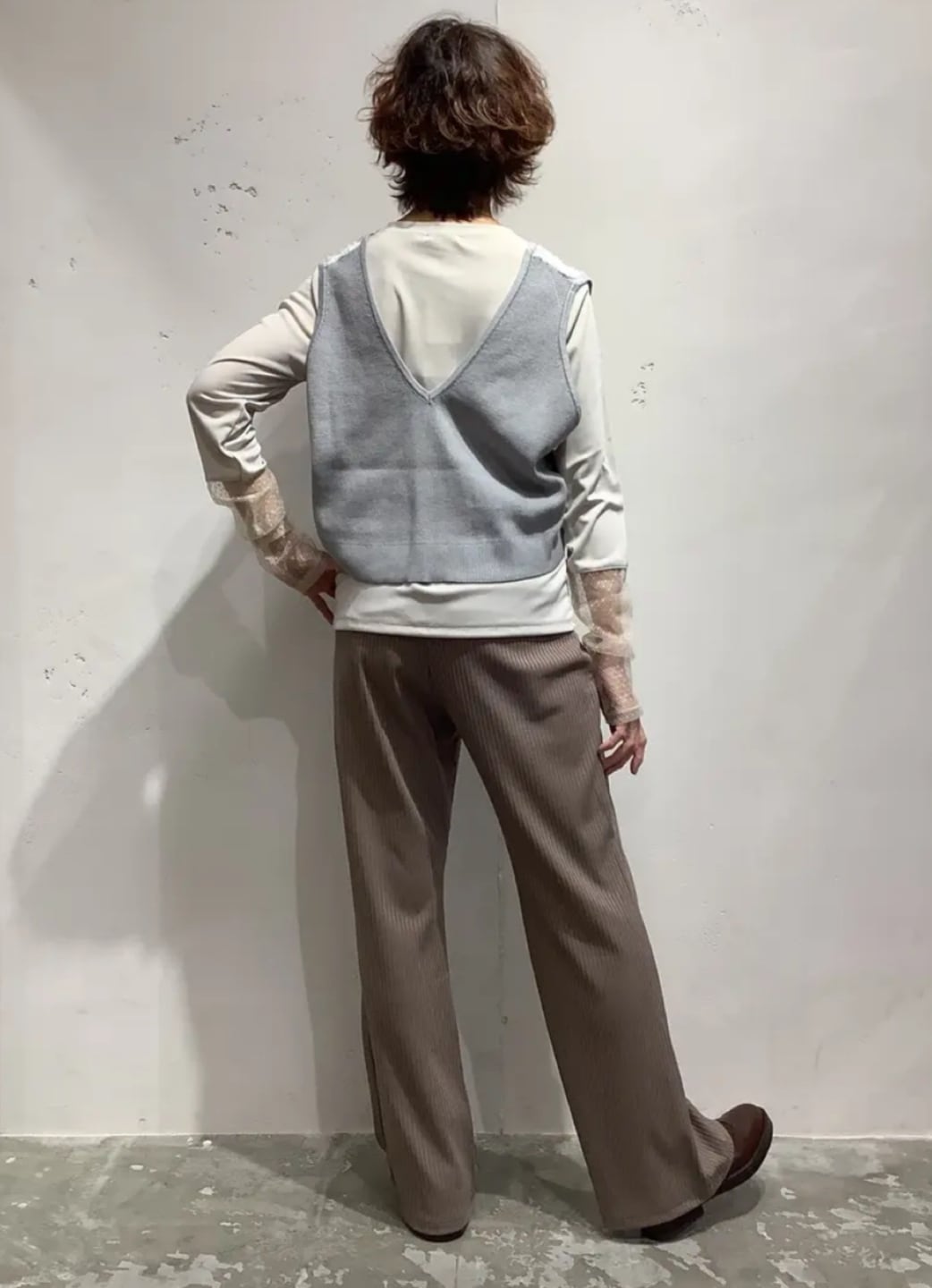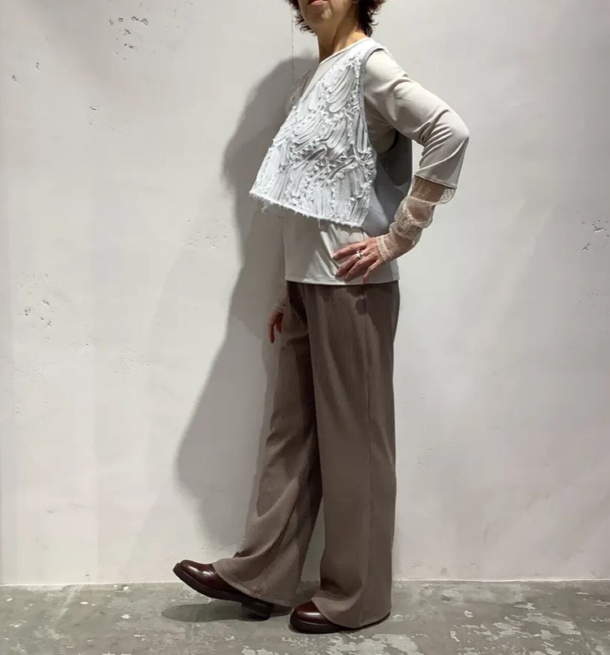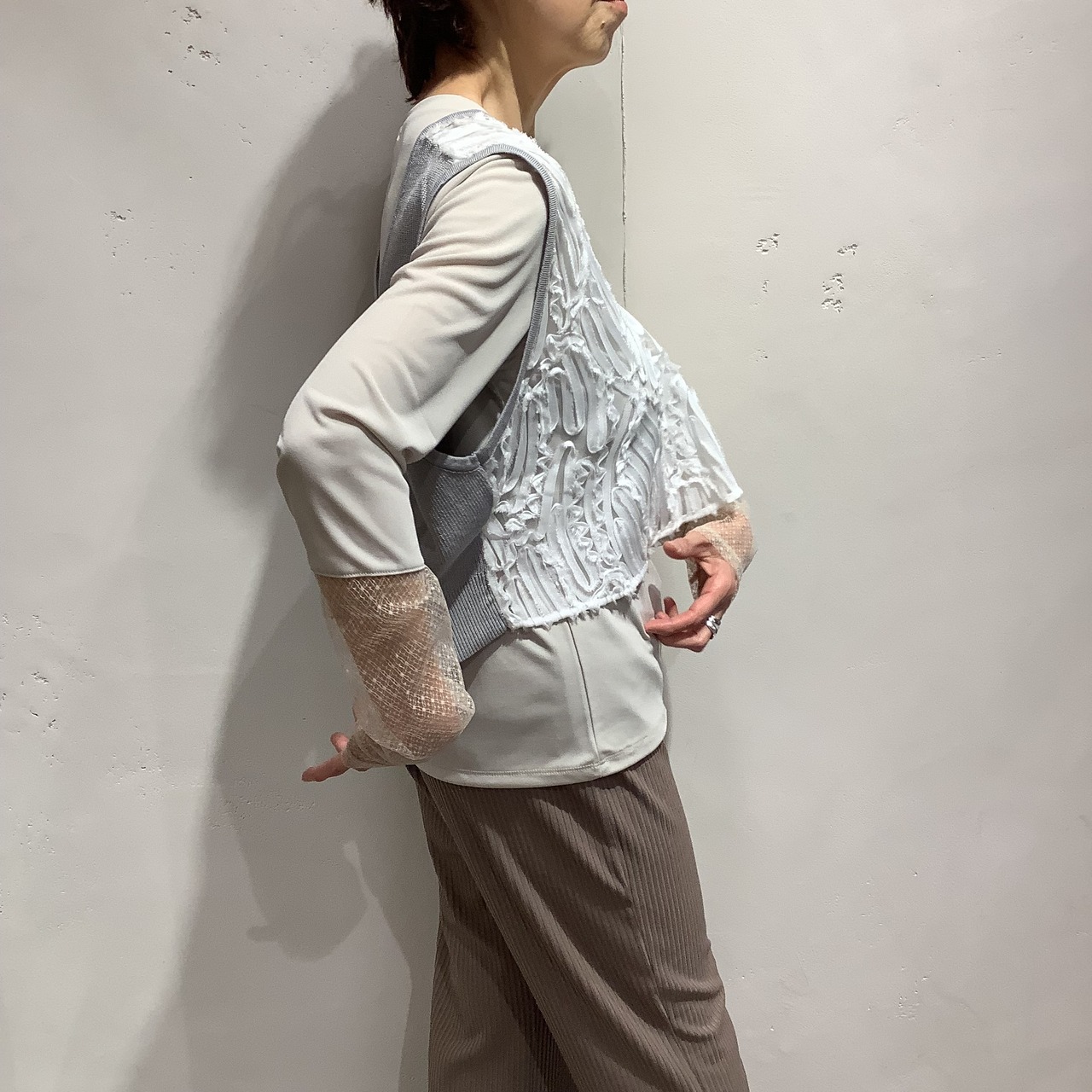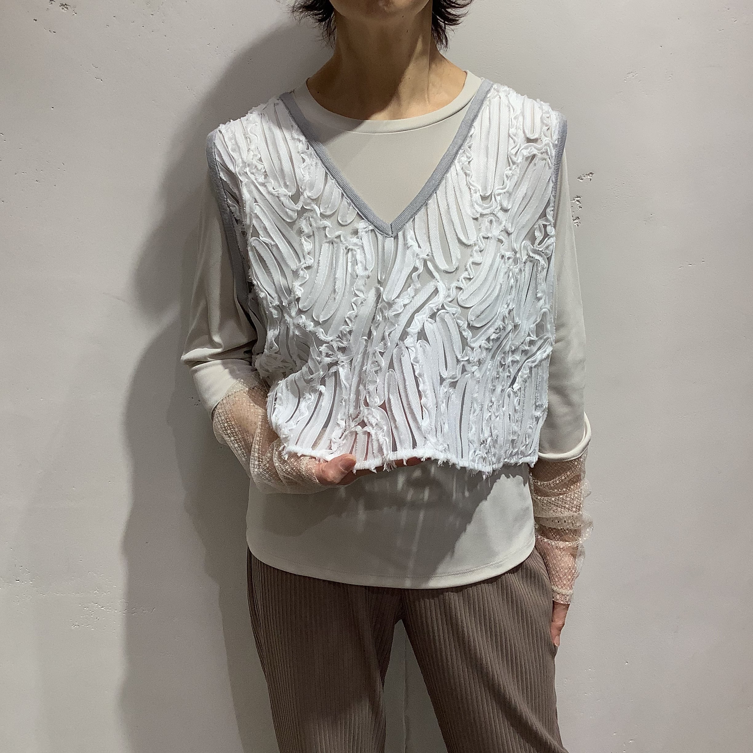 華やかなレース×ニットベスト