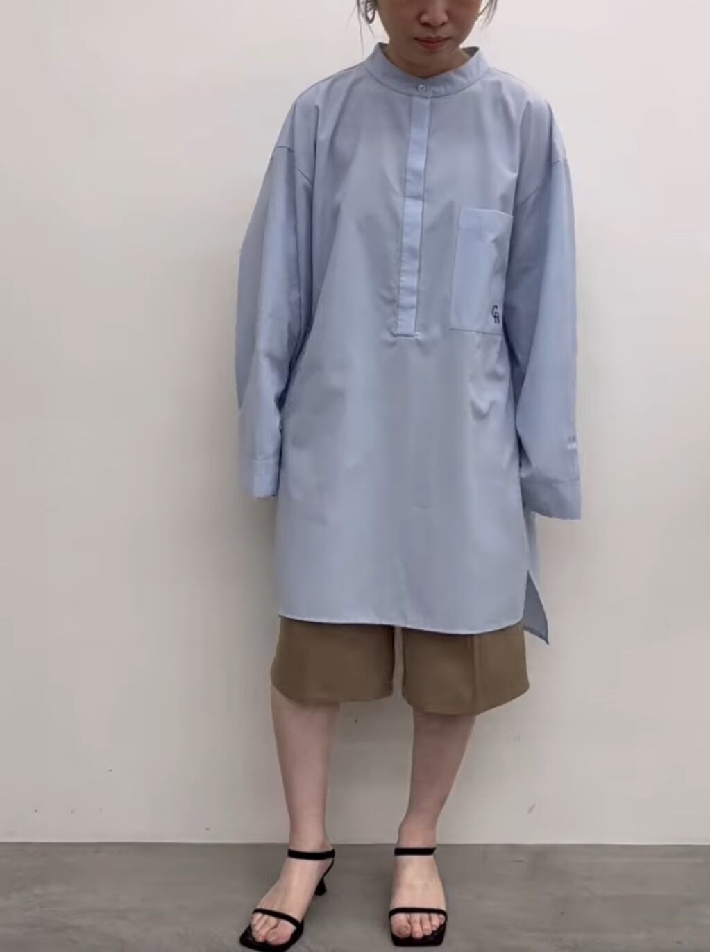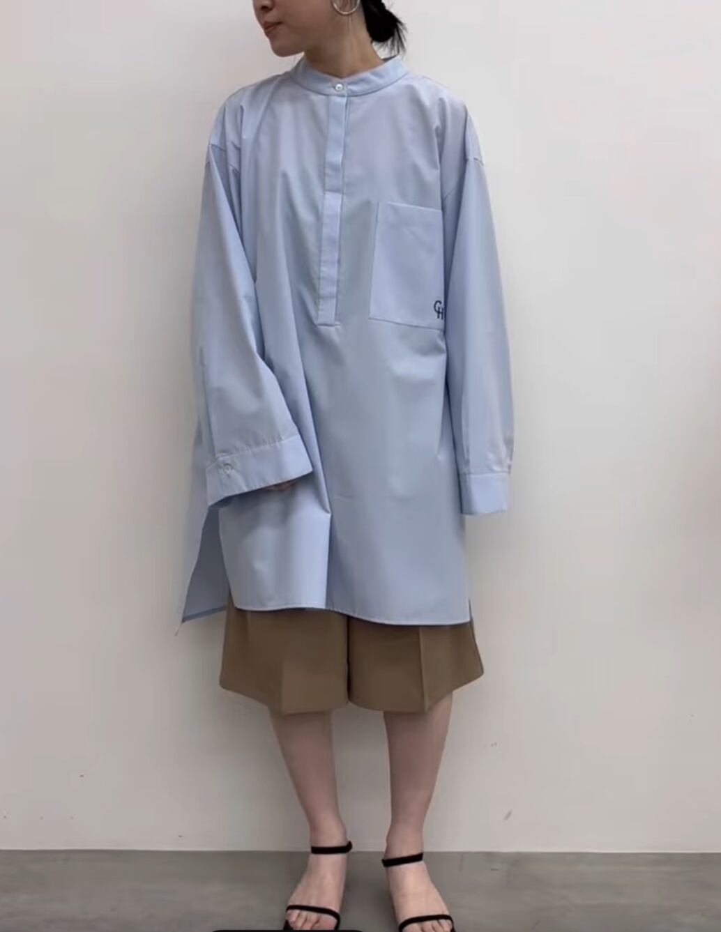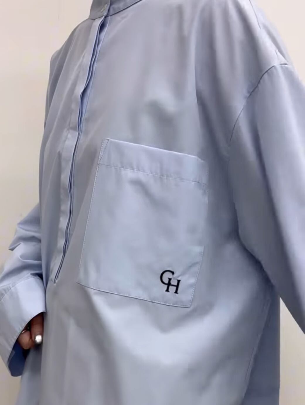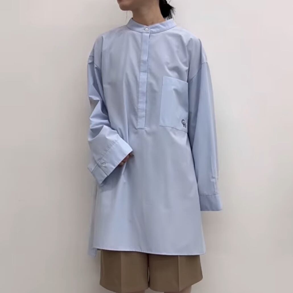 【CLOCHE(クロッシェ)】刺繍ロゴバンドカラーオーバーシャツ[612-85623]