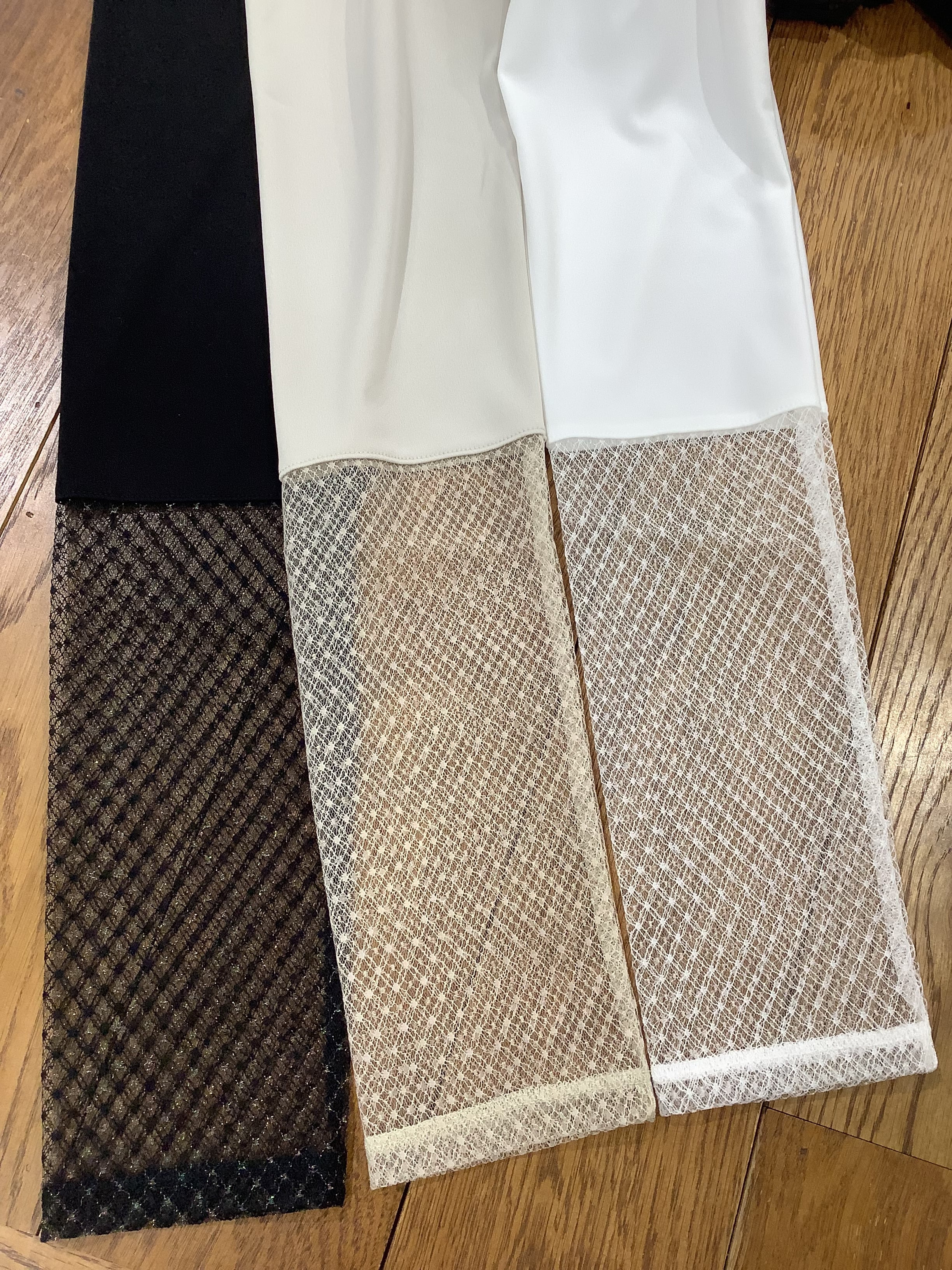 キラキラ光るラメ糸とレース使いが