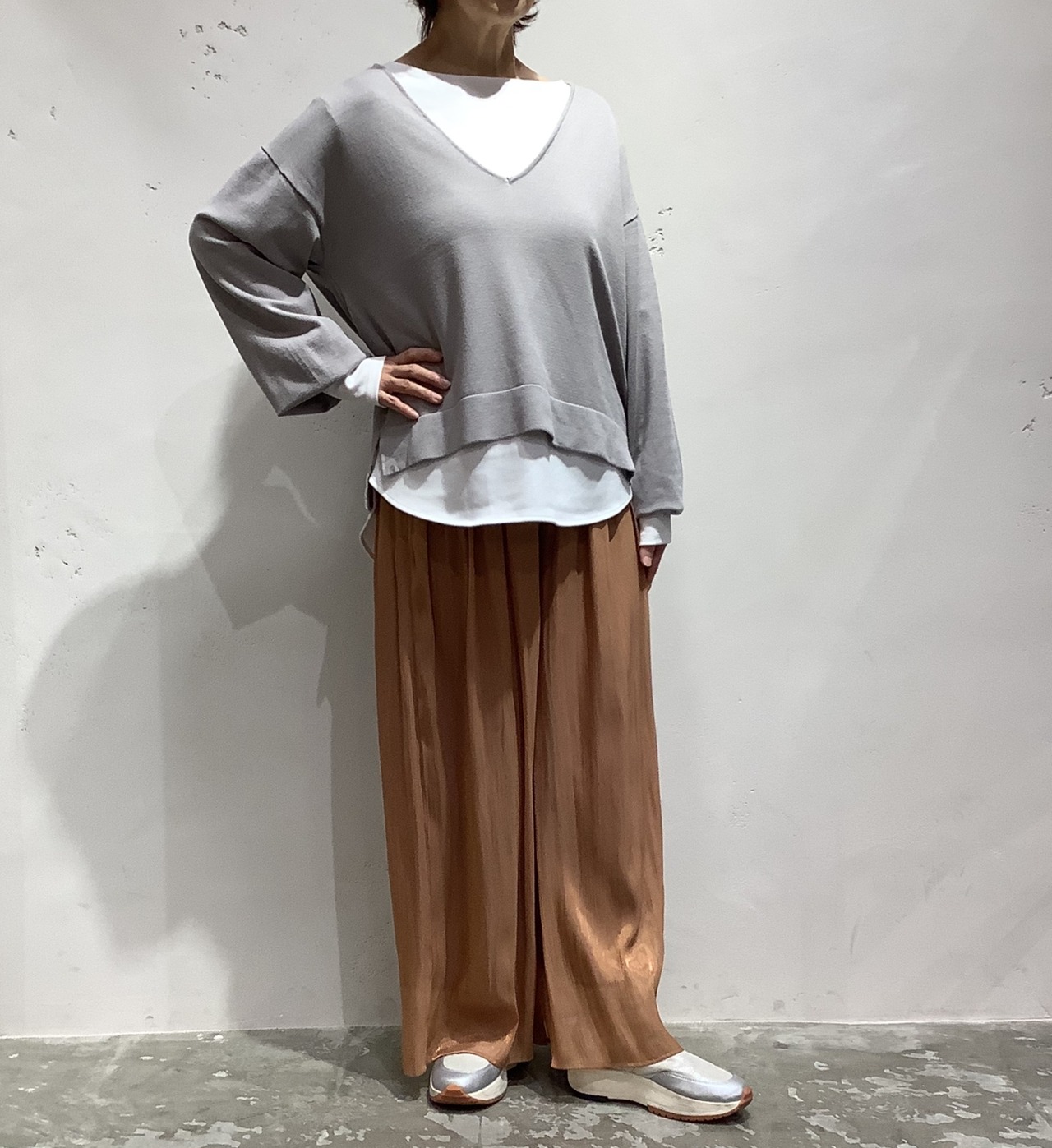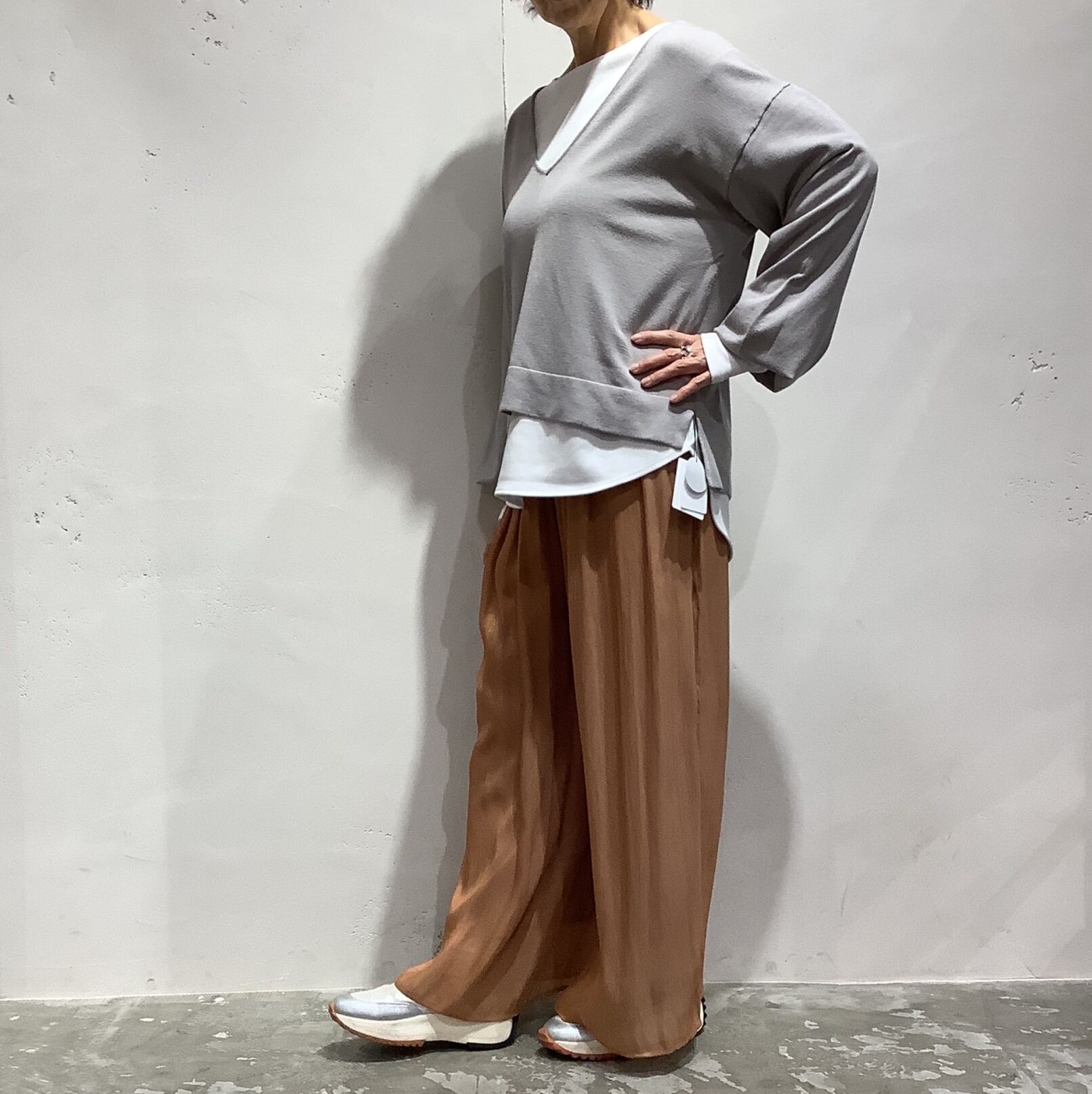 【CLOCHE(クロッシェ)】光沢シアーワイドパンツ[612-86516】