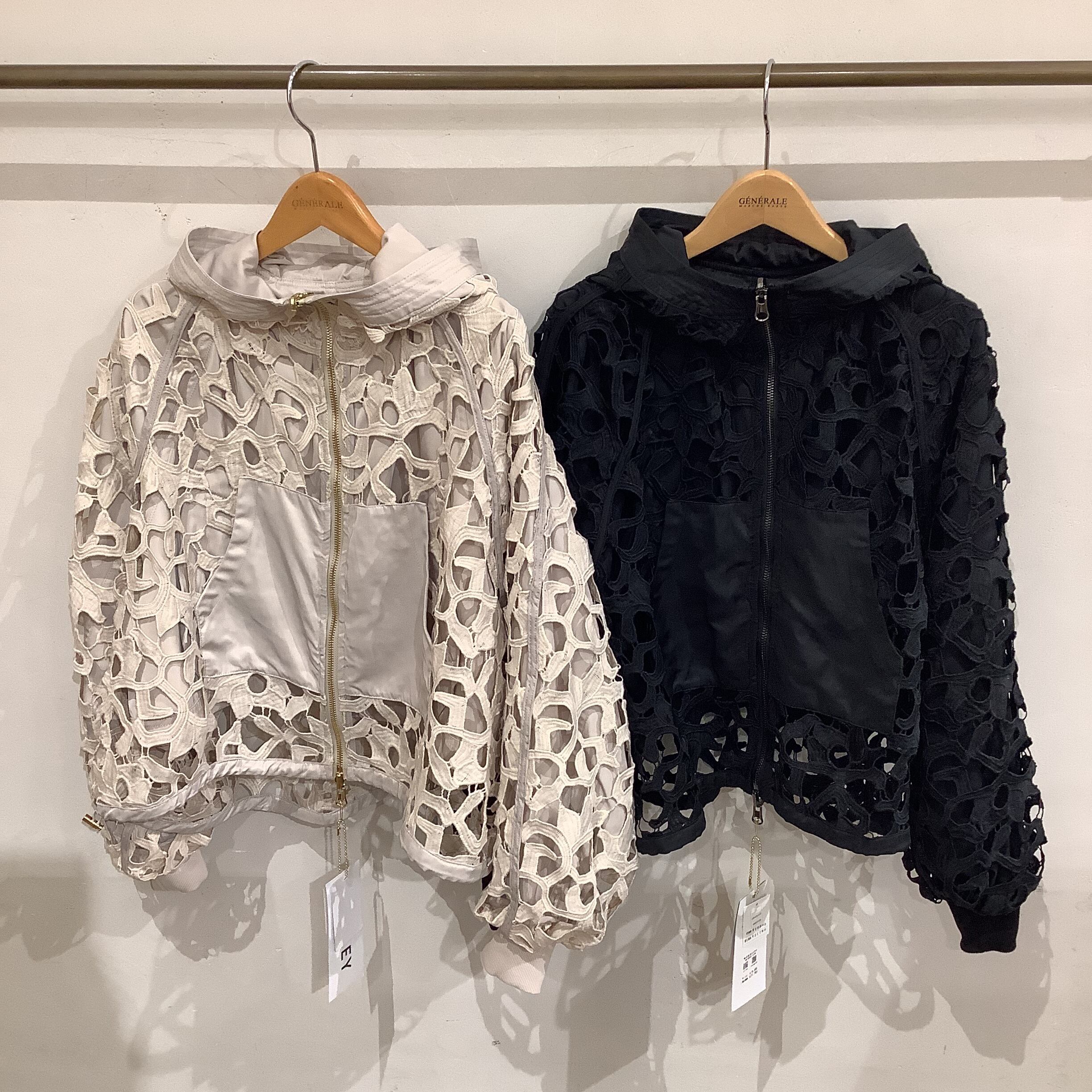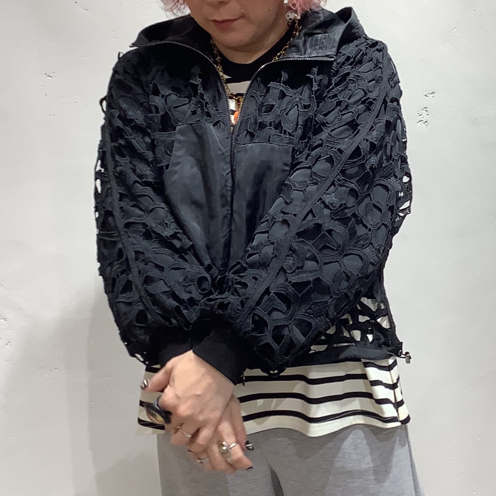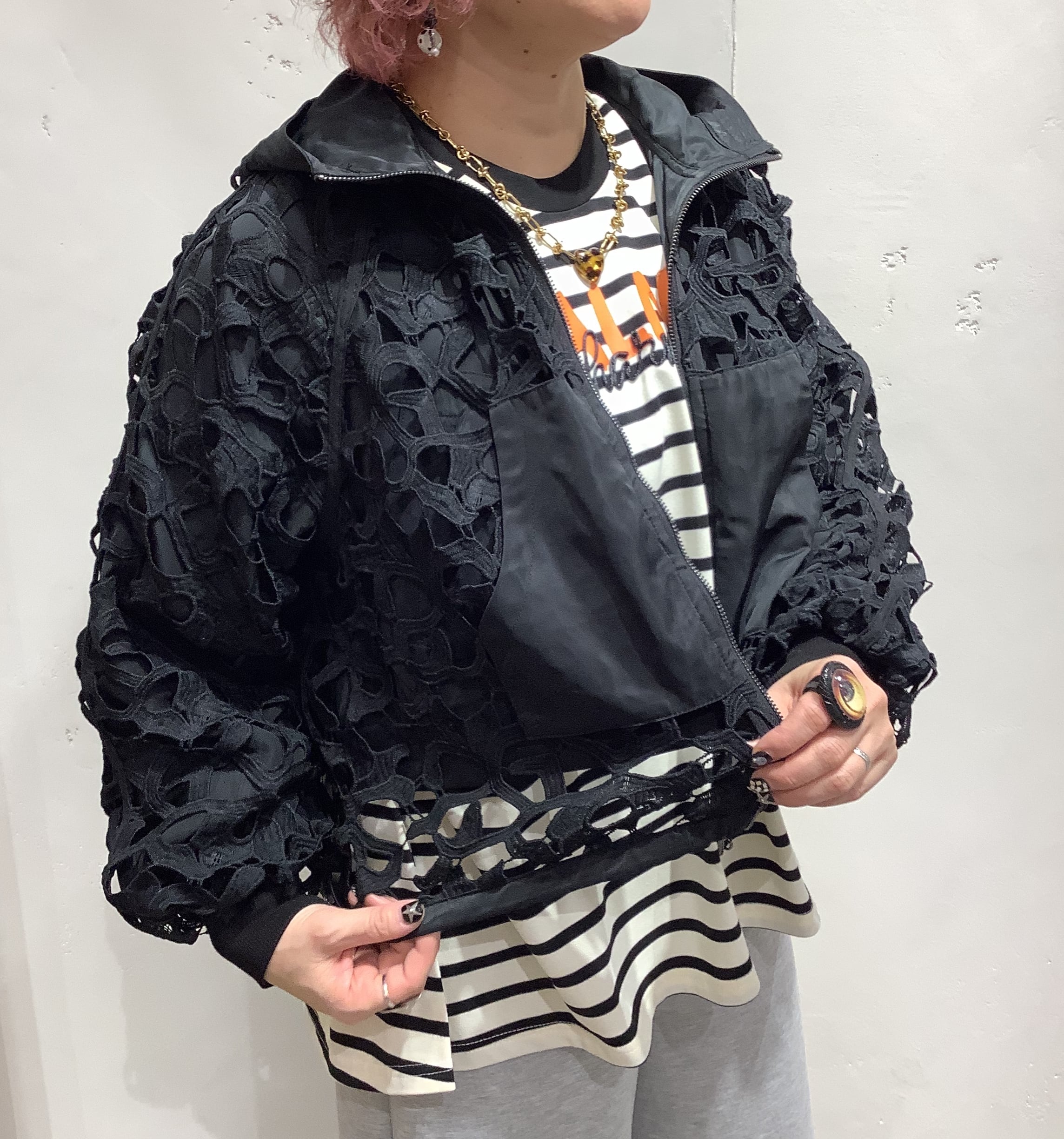 全面レースが主役の華やかコーデはもちろん、裾やフードからレースがちらっと見せる着こなしもGOOD♪