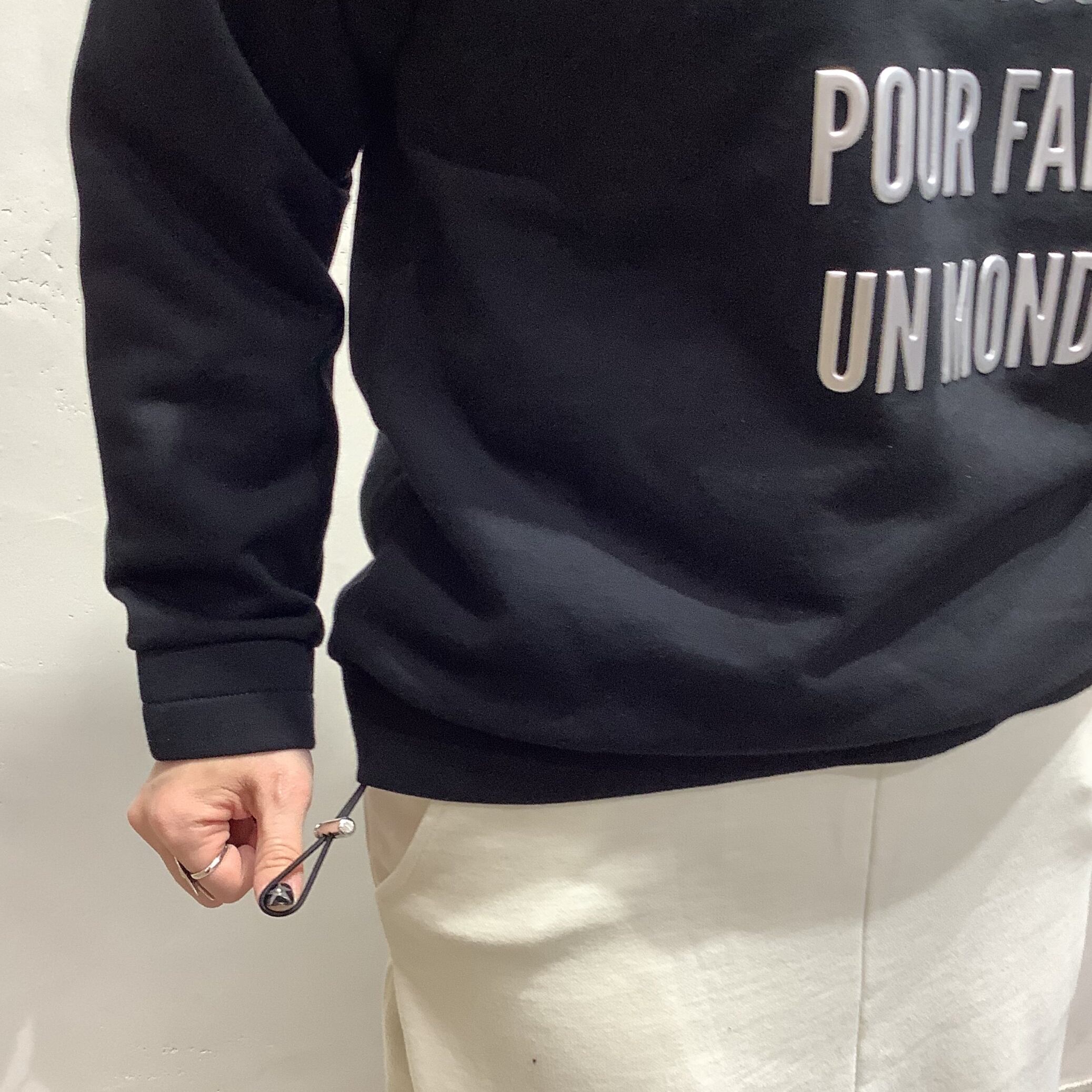 裾ドローコードラグランカットソー。