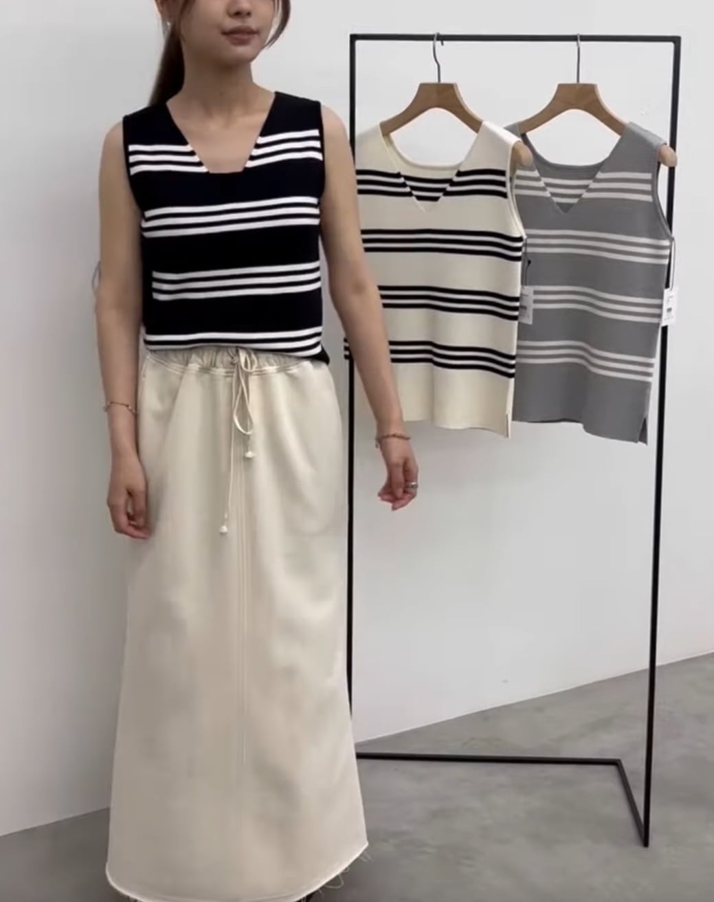 前後2wayマルチボーダータンクトップ。
