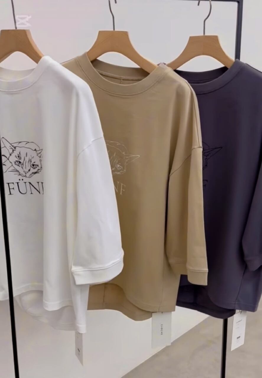 【CLOCHE(クロッシェ)】ネコプリントカットソー[612-85647]