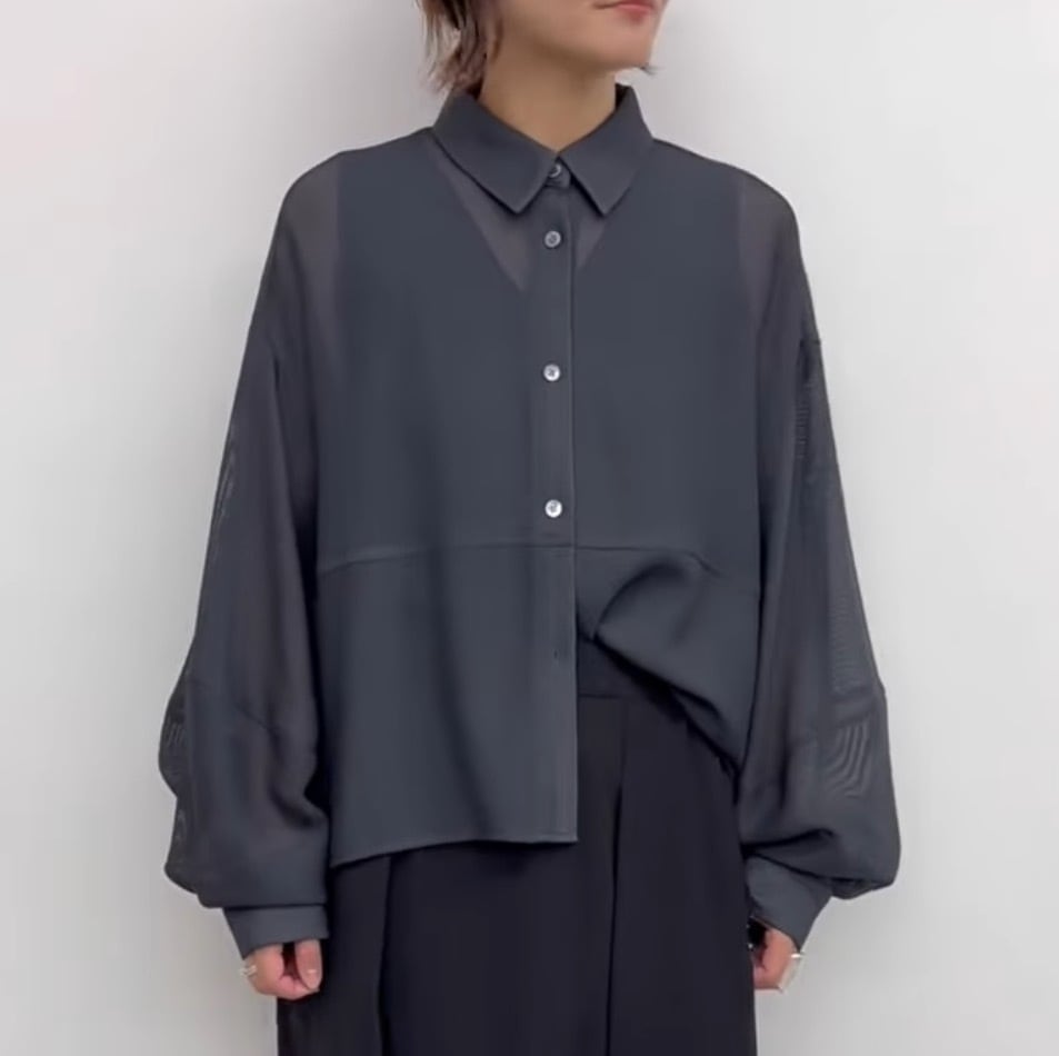 【CLOCHE(クロッシェ)】メッシュコクーンシャツ[612-85588]