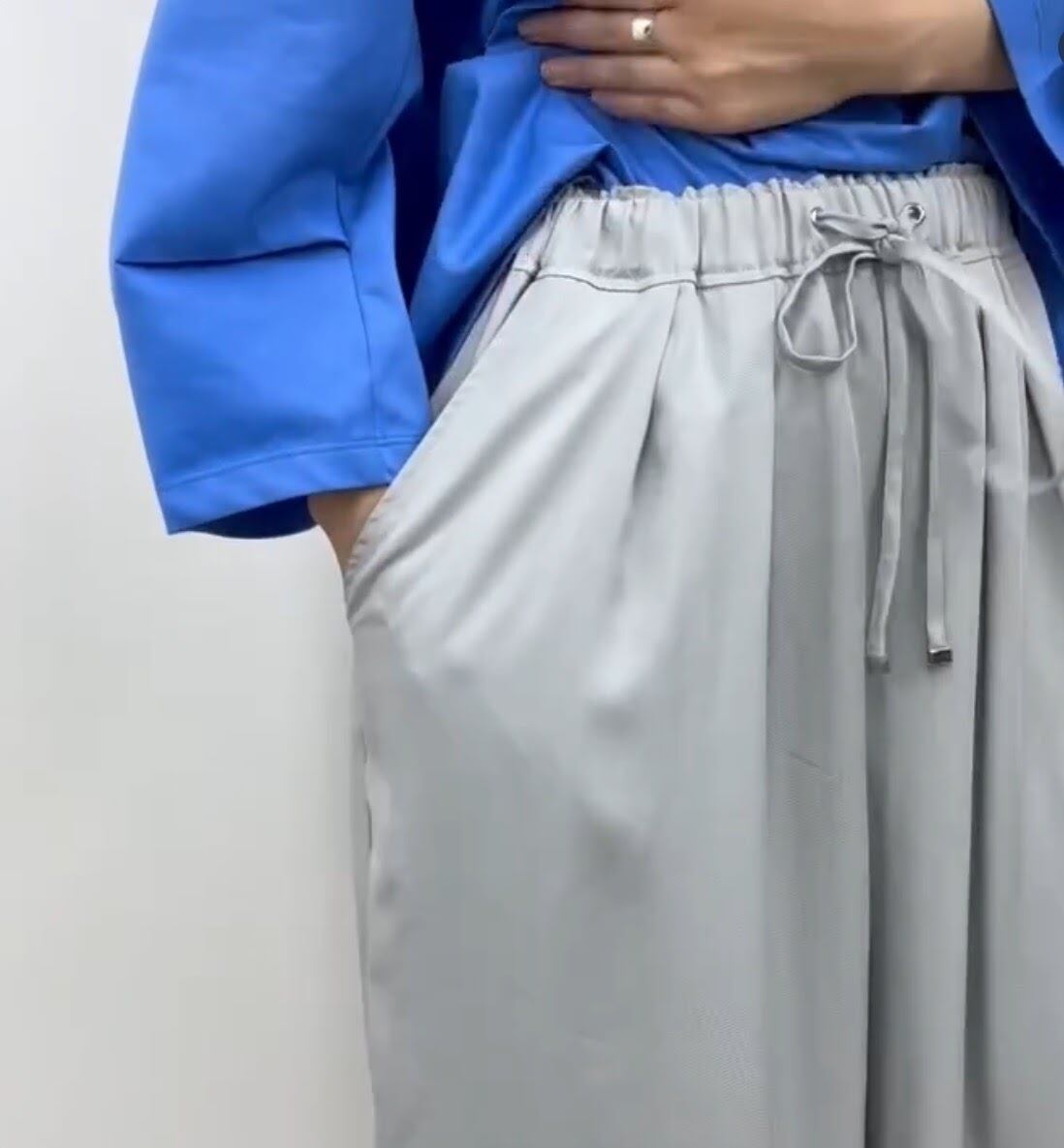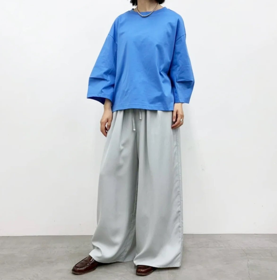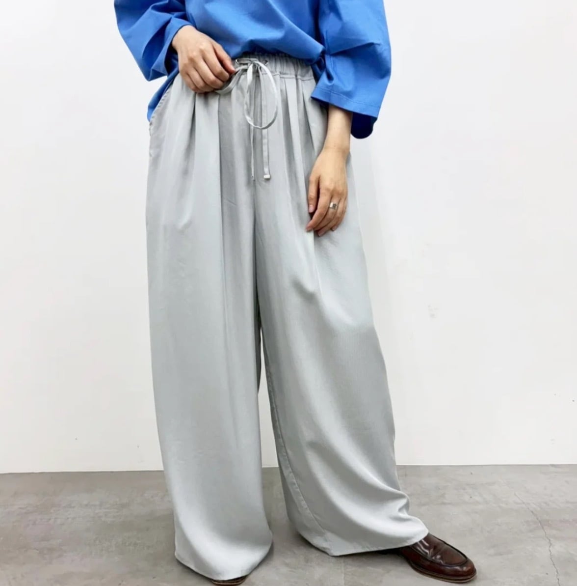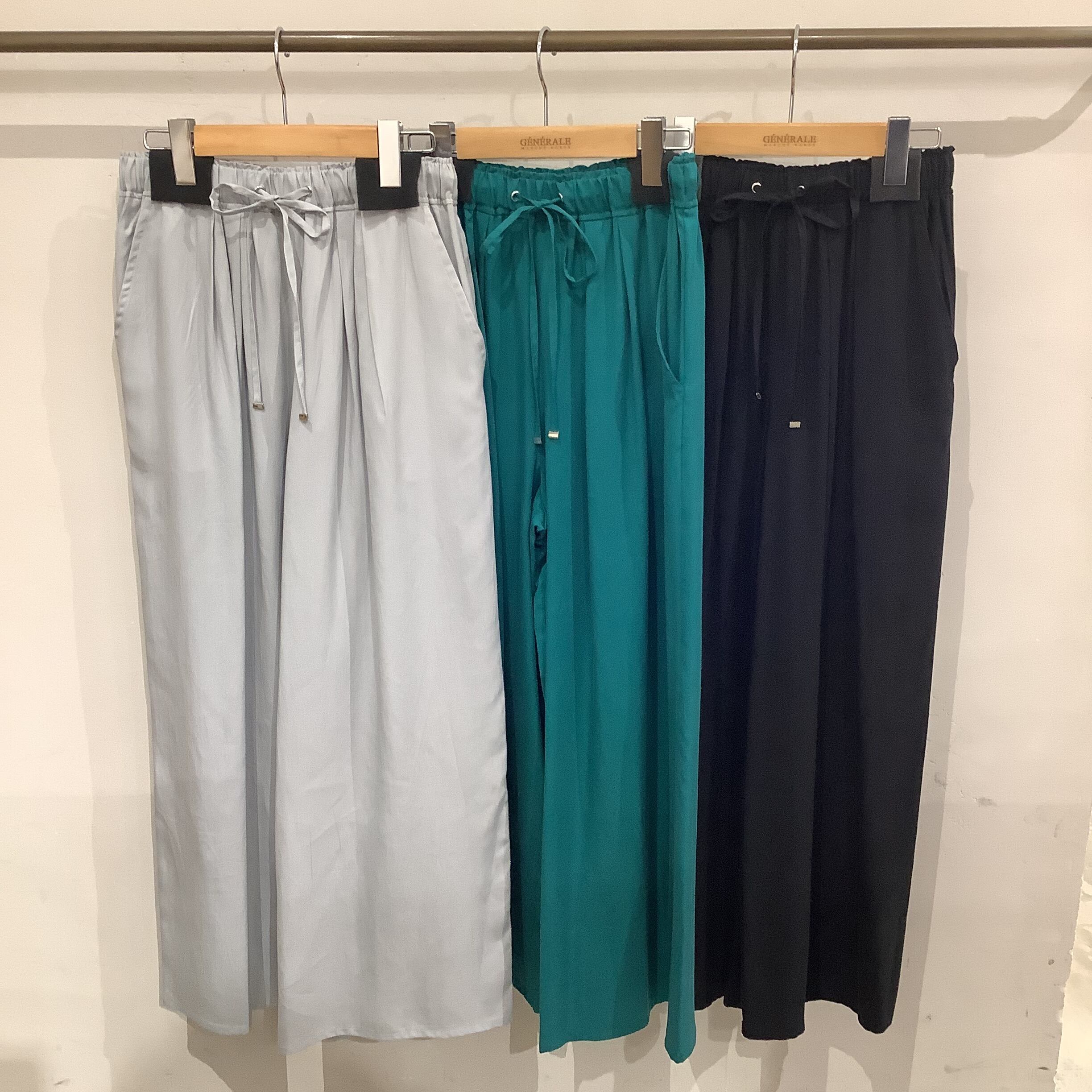 セルロース素材ワイドイージーパンツ。