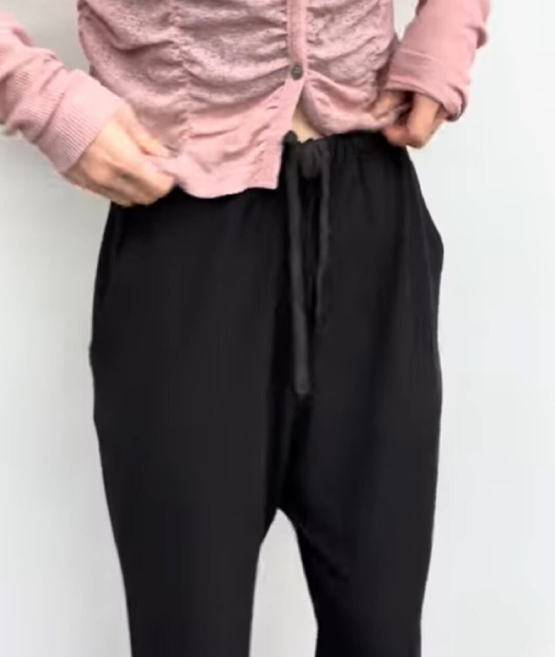 ウエストは総ゴム仕様、内紐付き。