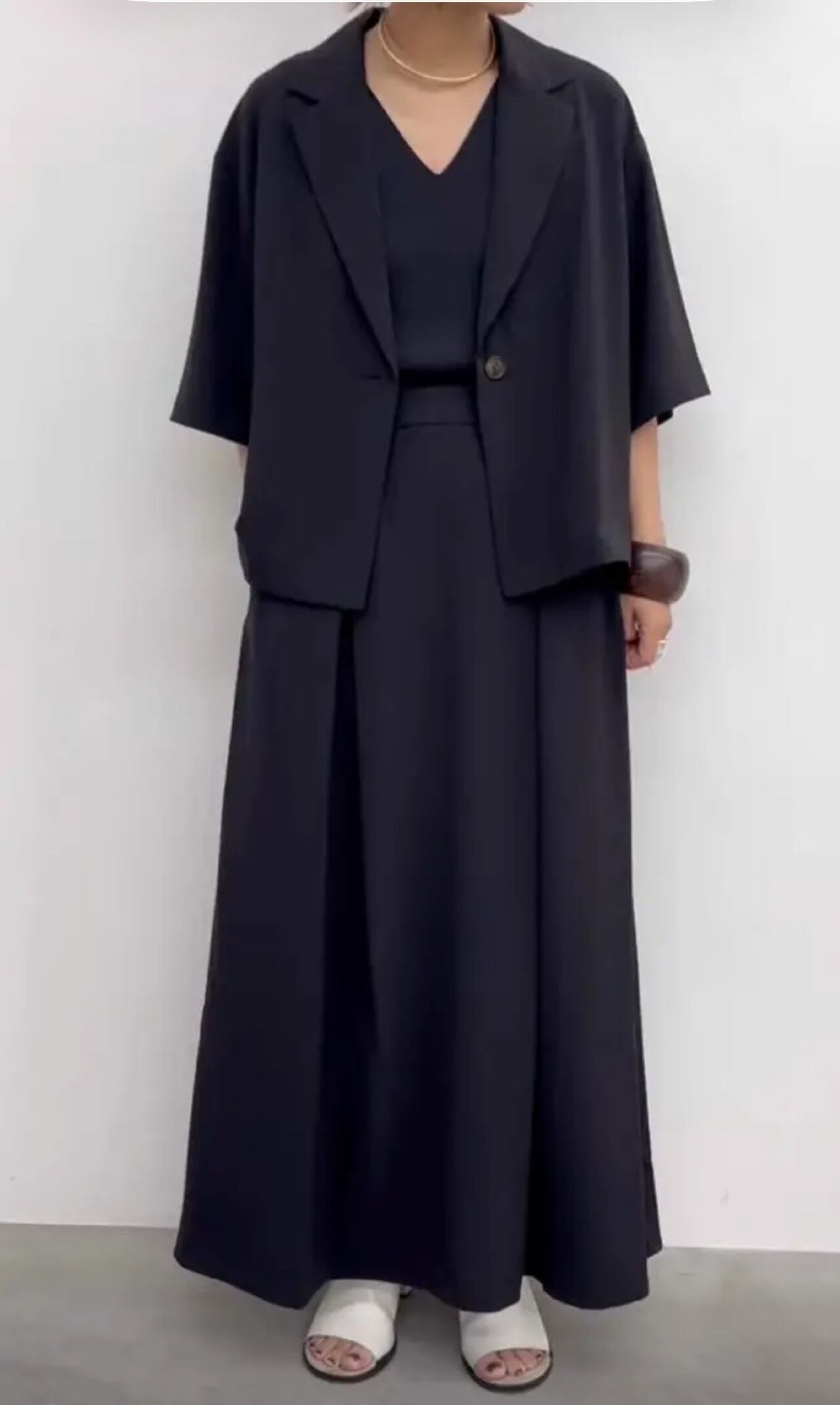 同素材のパンツとのセットアップがおすすめです!